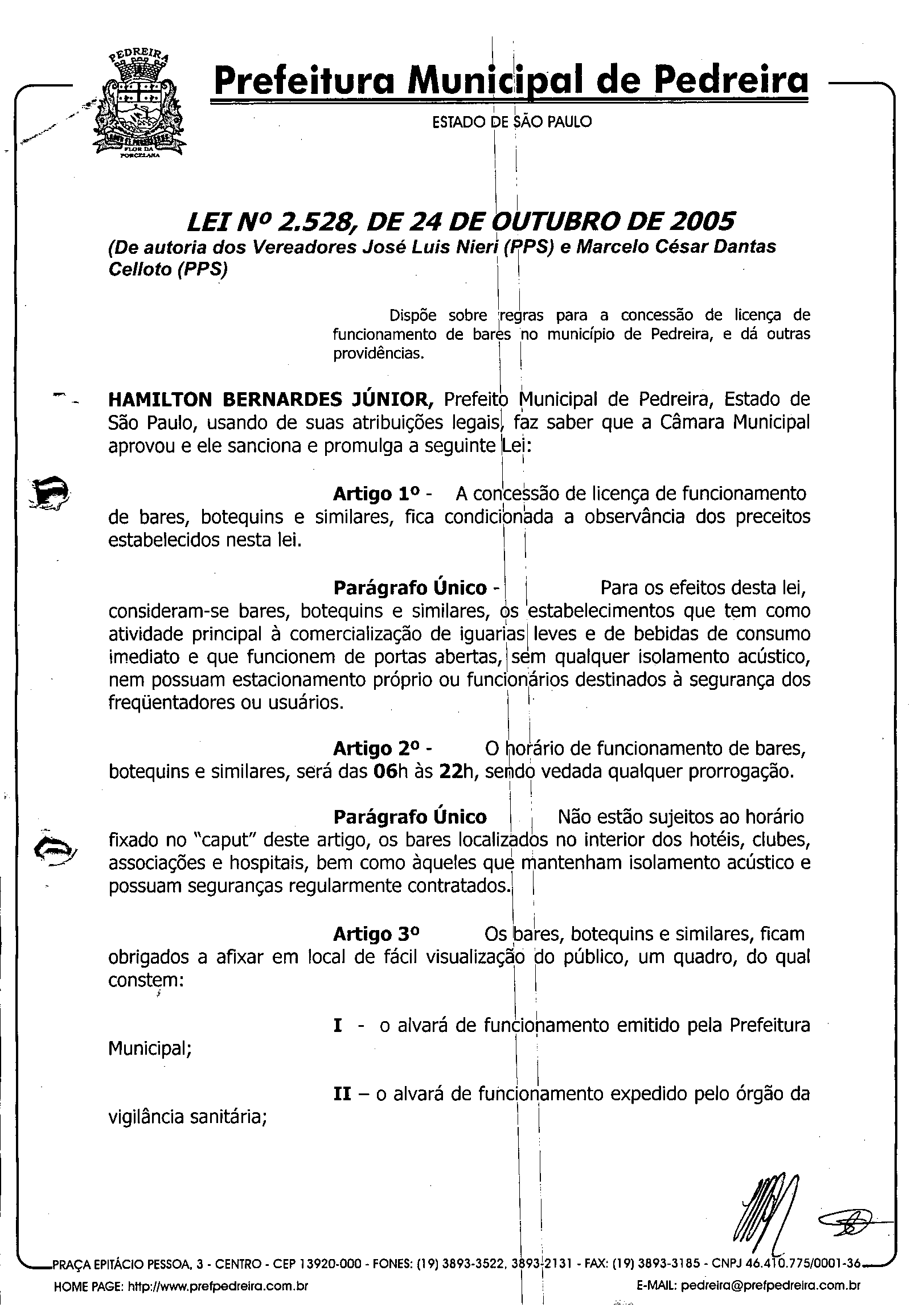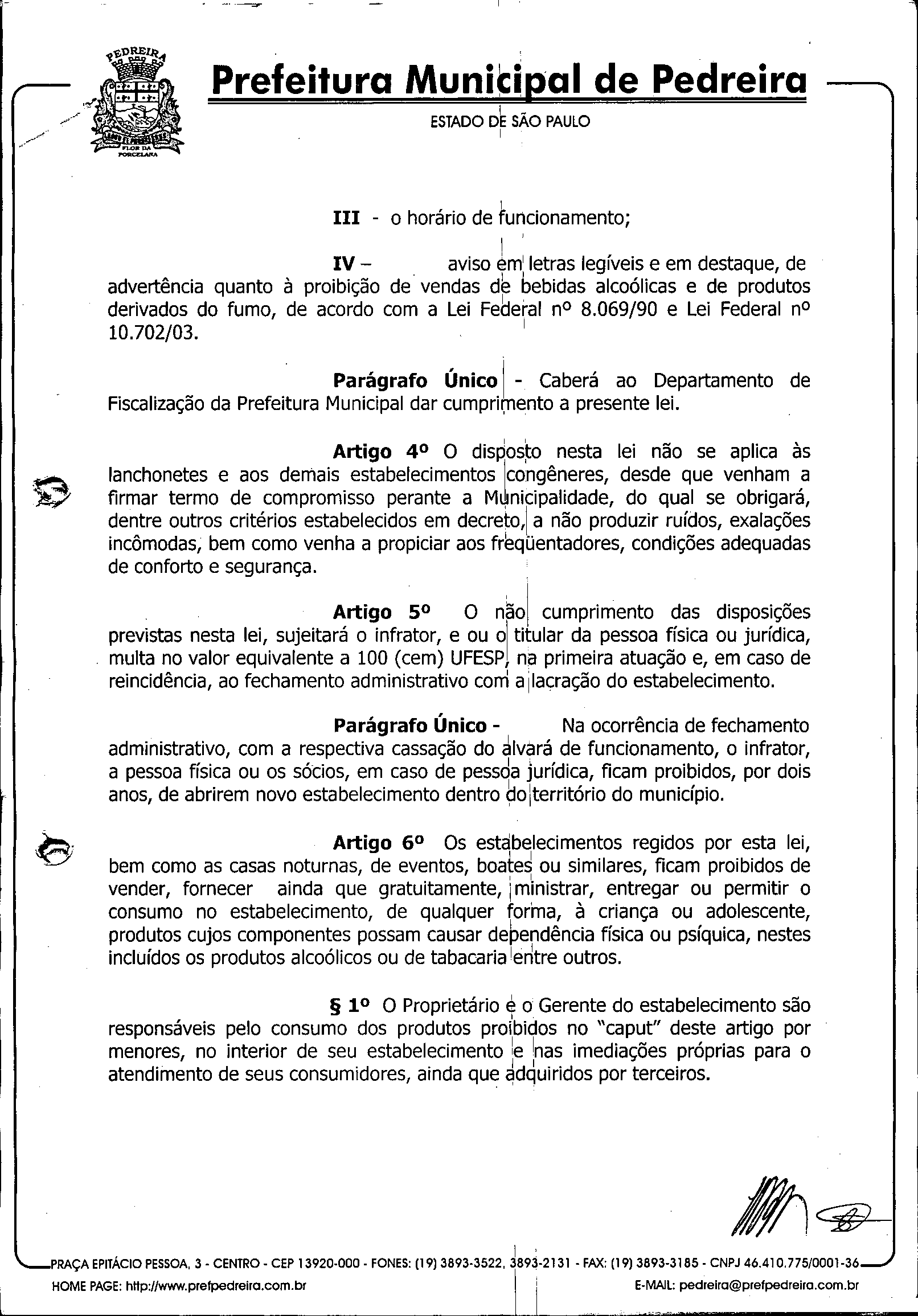 Ementa: Dispõe sobre regras para a concessão de licença de funcionamento de bares no município de Pedreira, e dá outras providências.