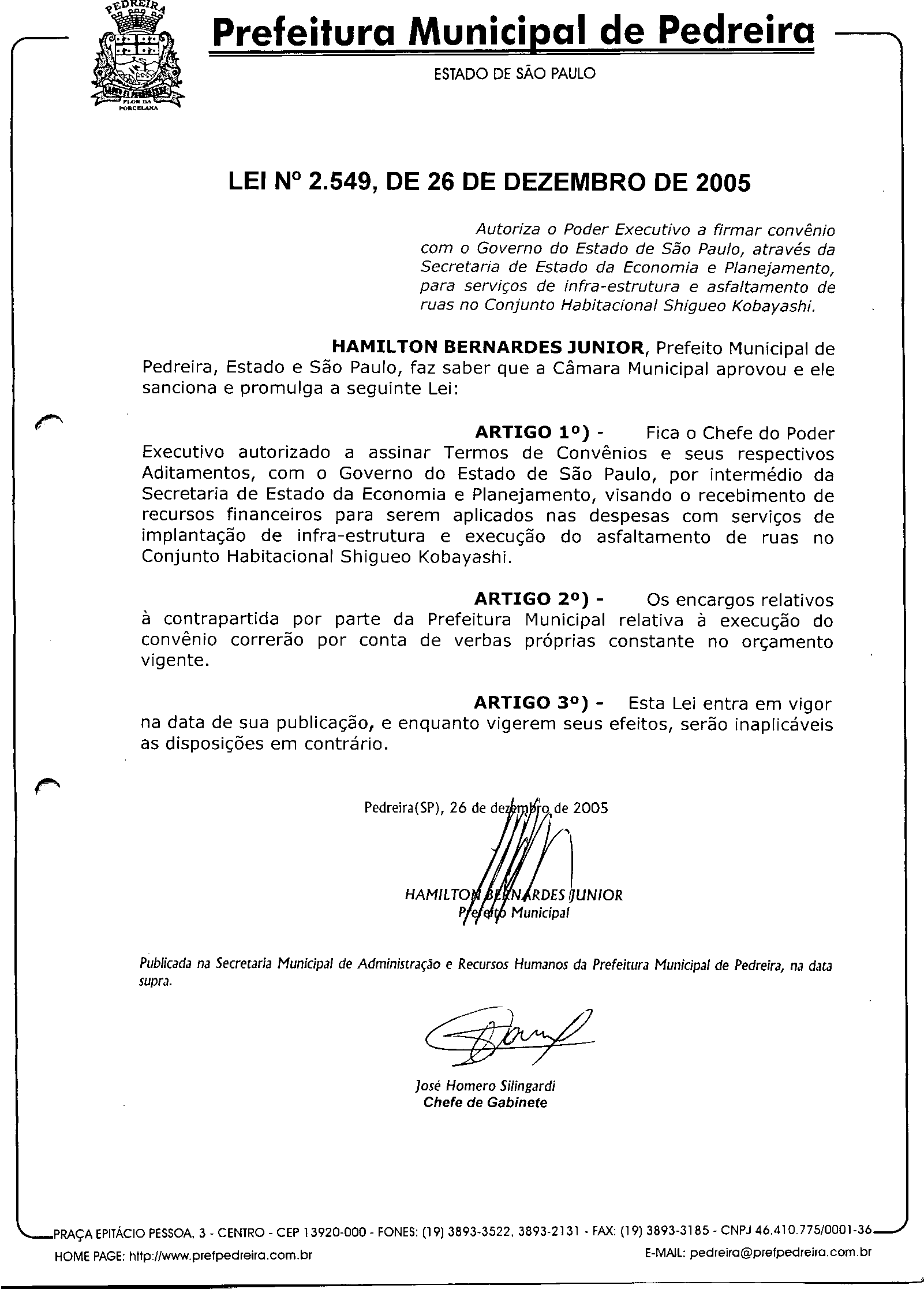 Ementa: Autoriza o Poder Executivo a firmar convênio com o Governo do Estado de São Paulo, através da Secretaria de Estado da Economia e Planejamento, para serviços de infra-estrutura e asfaltamento de ruas no Conjunto Habitacional Shigueo Kobayashi.