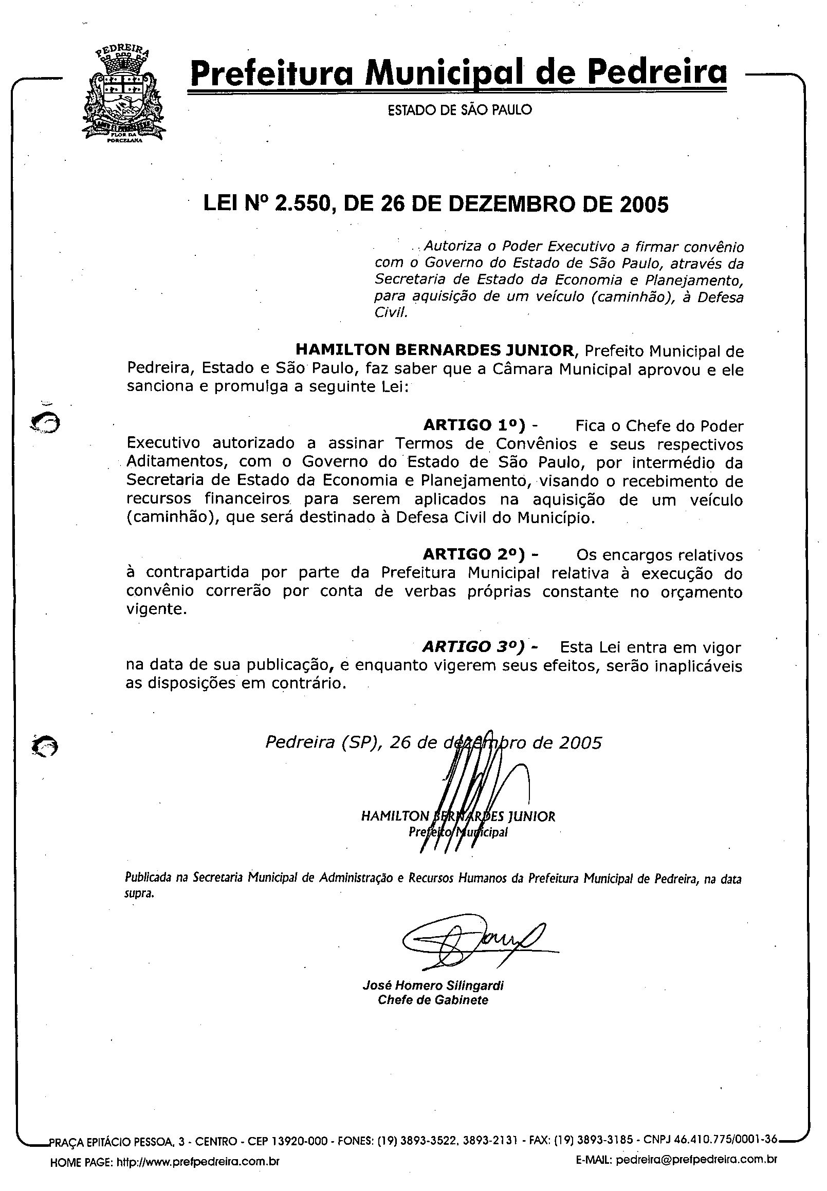 Lei Municipal - N° 2550 de 26/12/2005