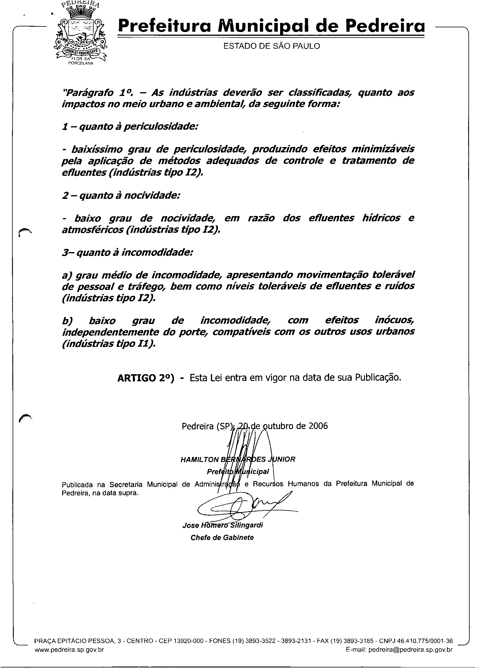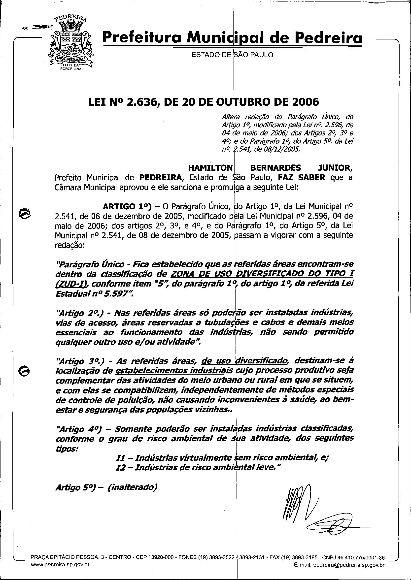 Lei Municipal - N° 2636 de 20/10/2006