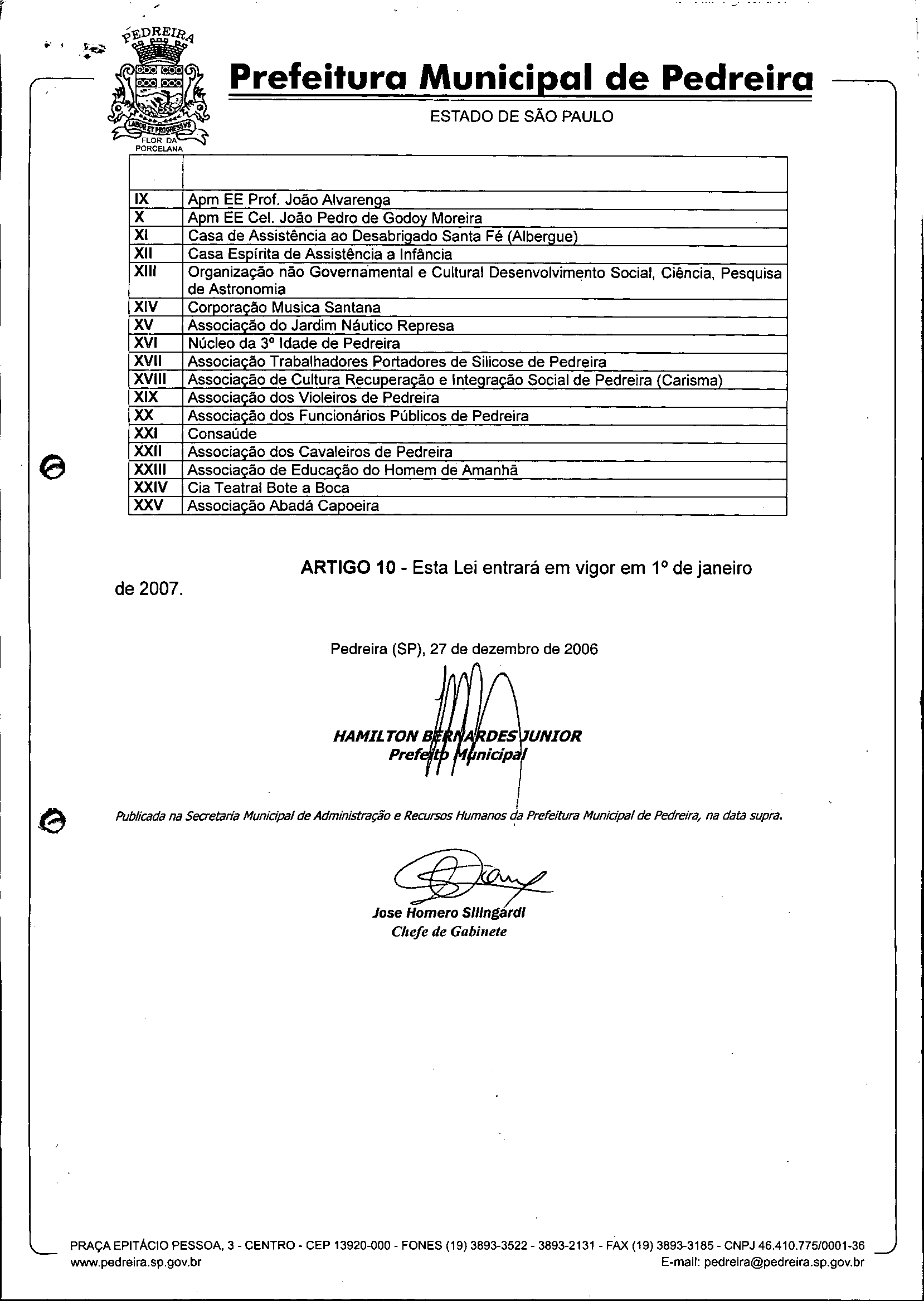 Lei Municipal - N° 2656 de 27/12/2006