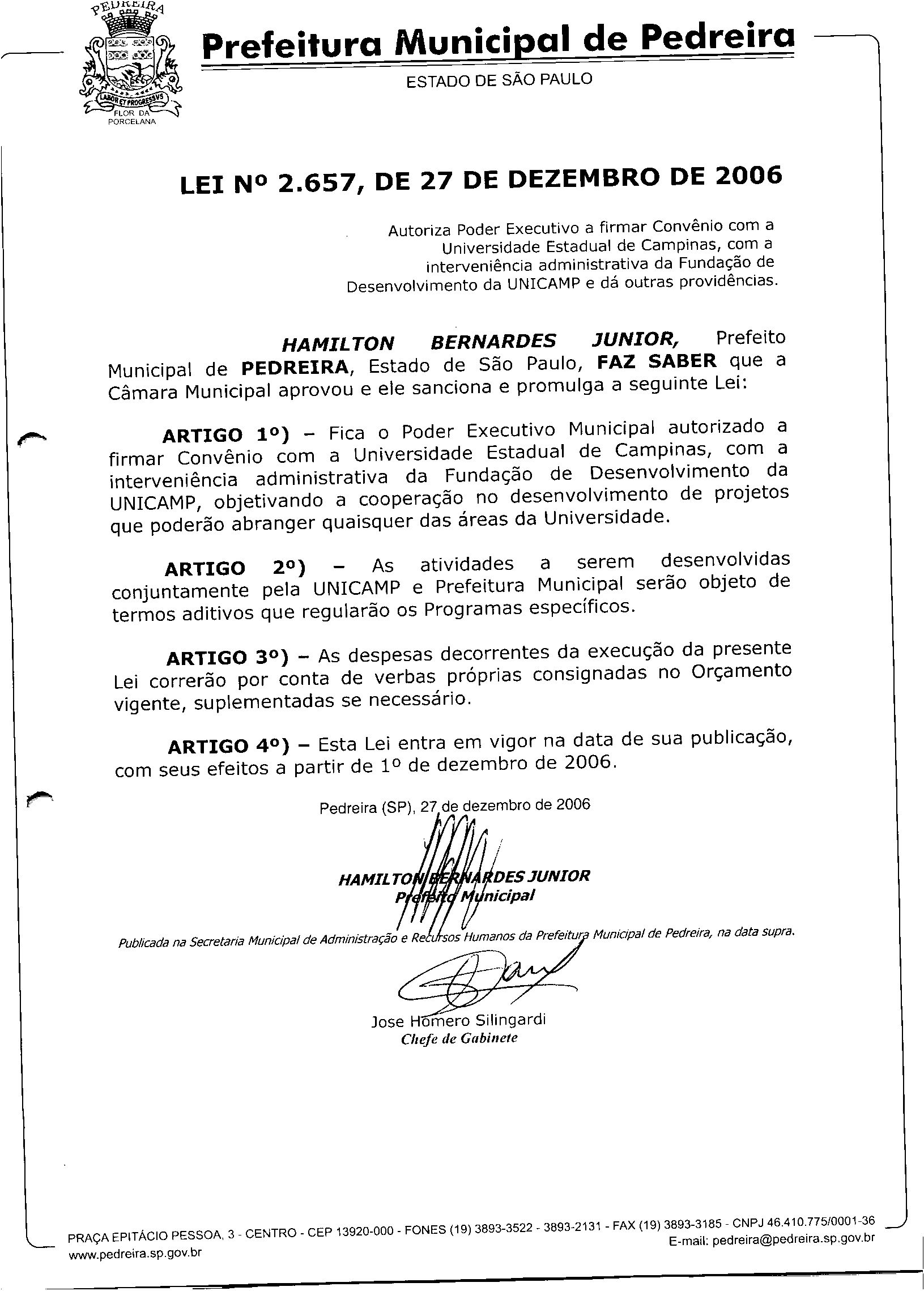 Lei Municipal - N° 2657 de 27/12/2006