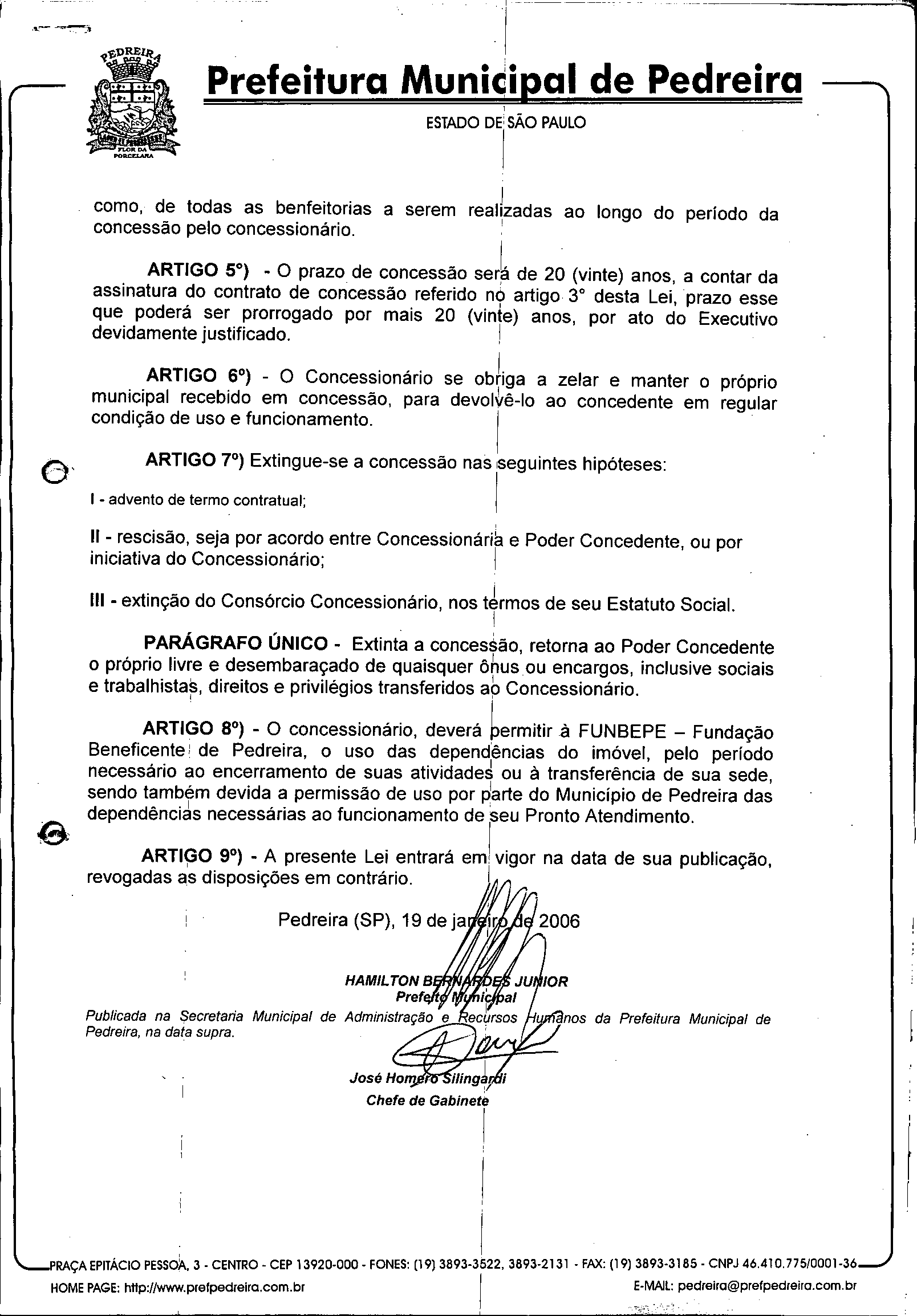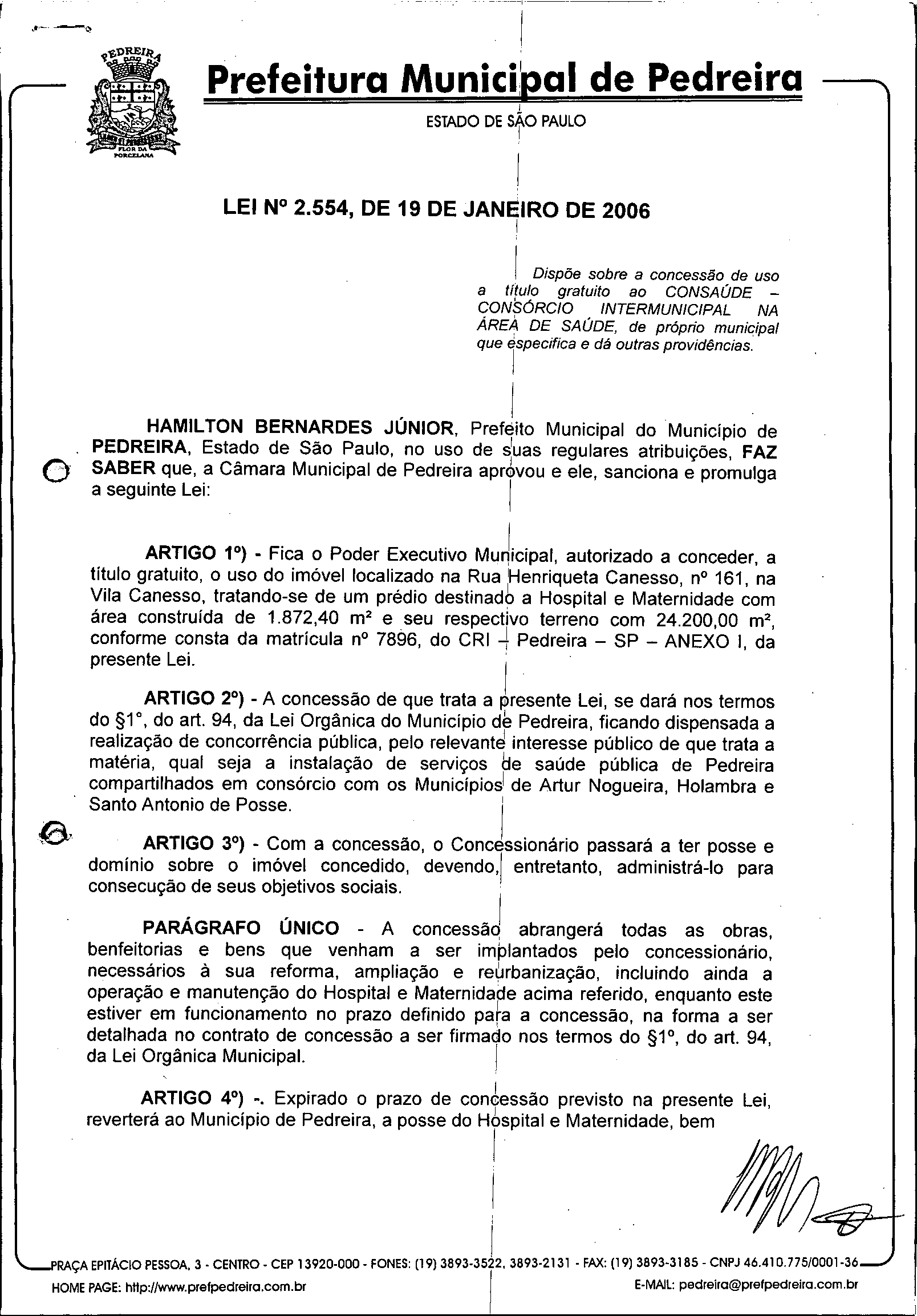 Lei Municipal - N° 2554 de 19/01/2006