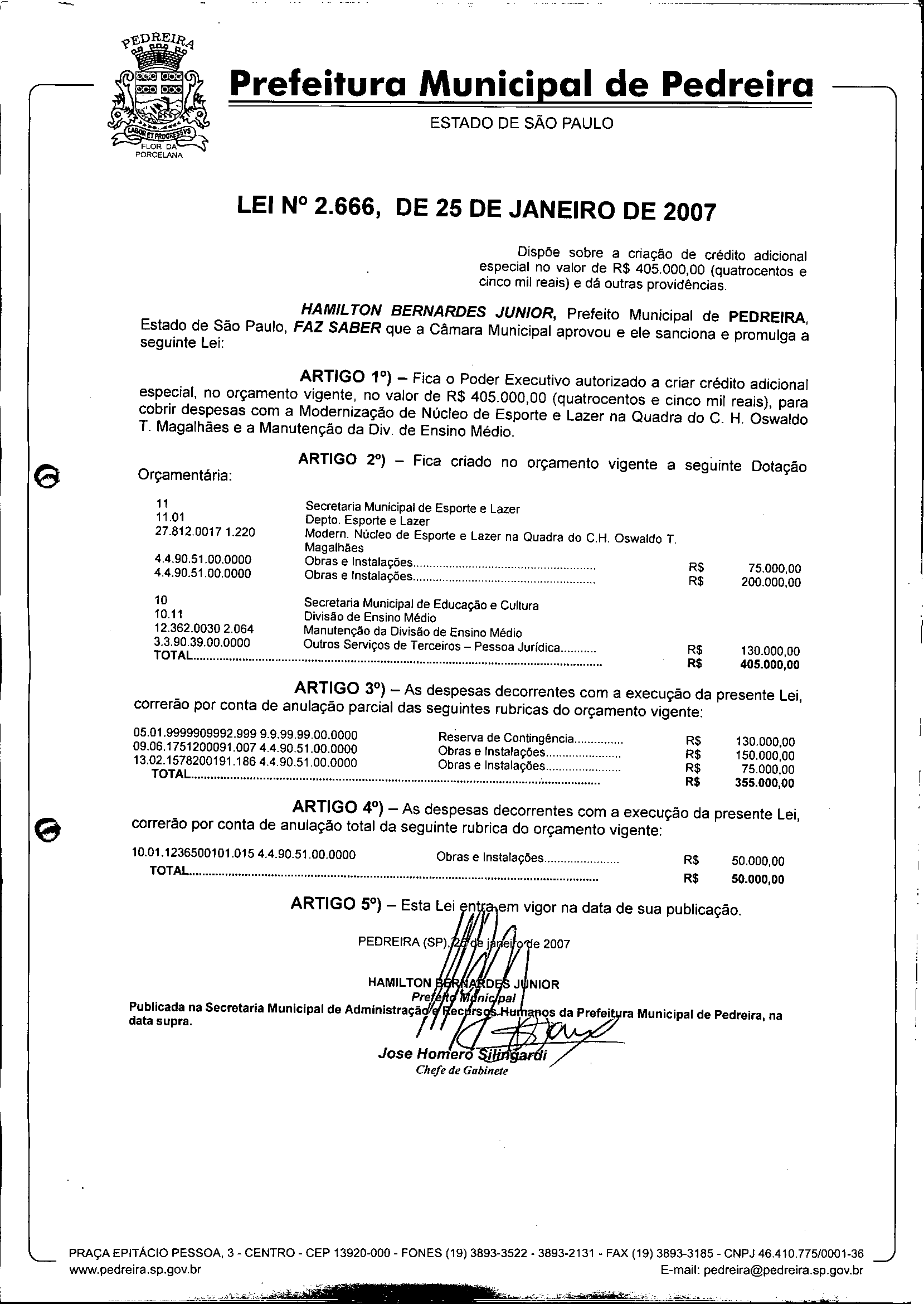 Ementa: Dispõe sobre a criação de crédito adicional especial no valor de R$ 405.000,00 (quatrocentos e cinco mil reais) e dá outras providências.