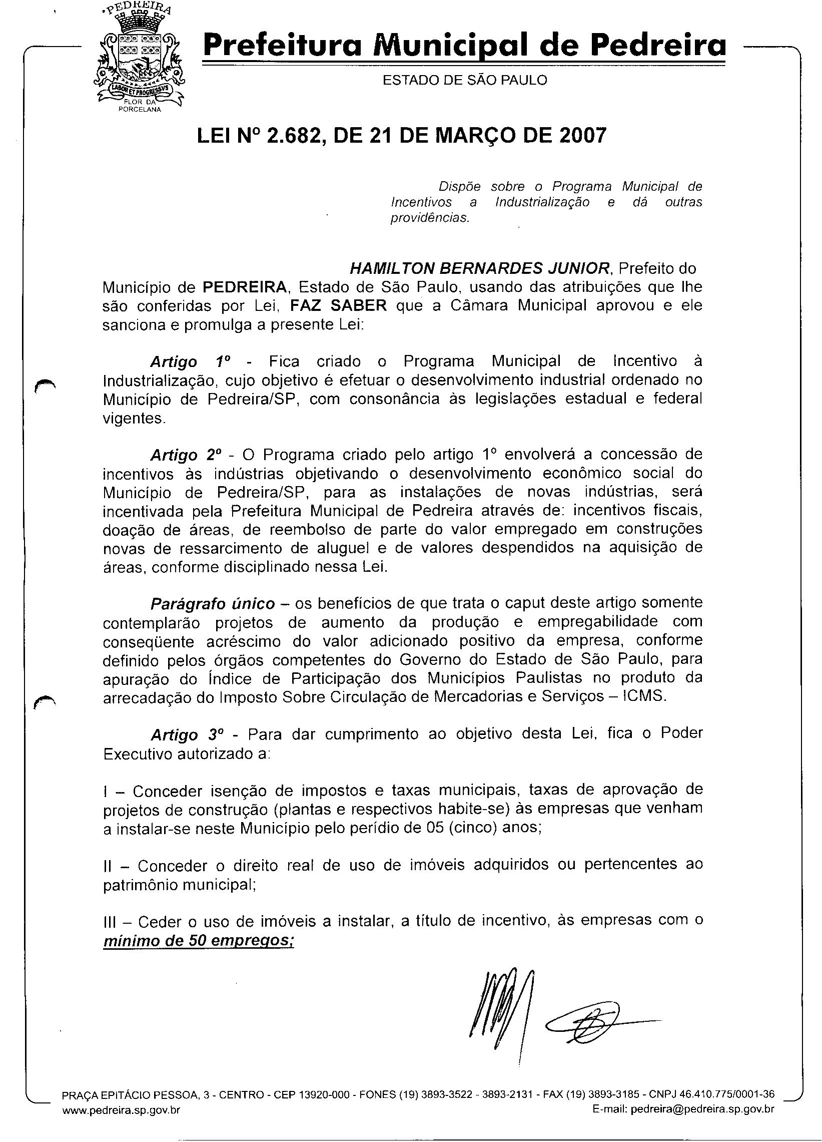 Ementa: Dispõe sobre o Programa Municipal de Incentivos a Industrialização e dá outras providências.