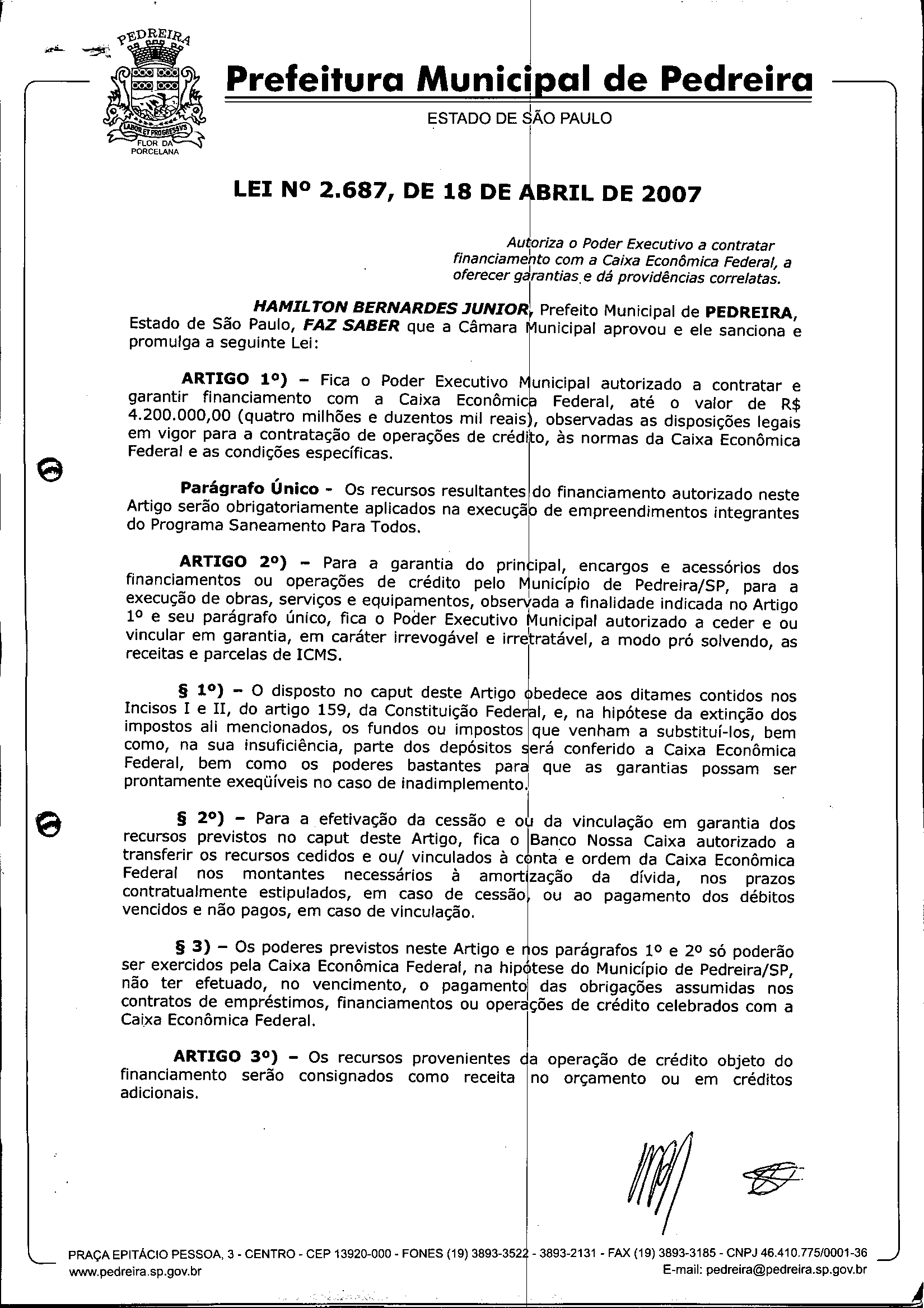 Ementa: Autoriza o Poder Executivo a contratar financiamento com a Caixa Econômica Federal, a oferecer garantias e dá providências correlatas.