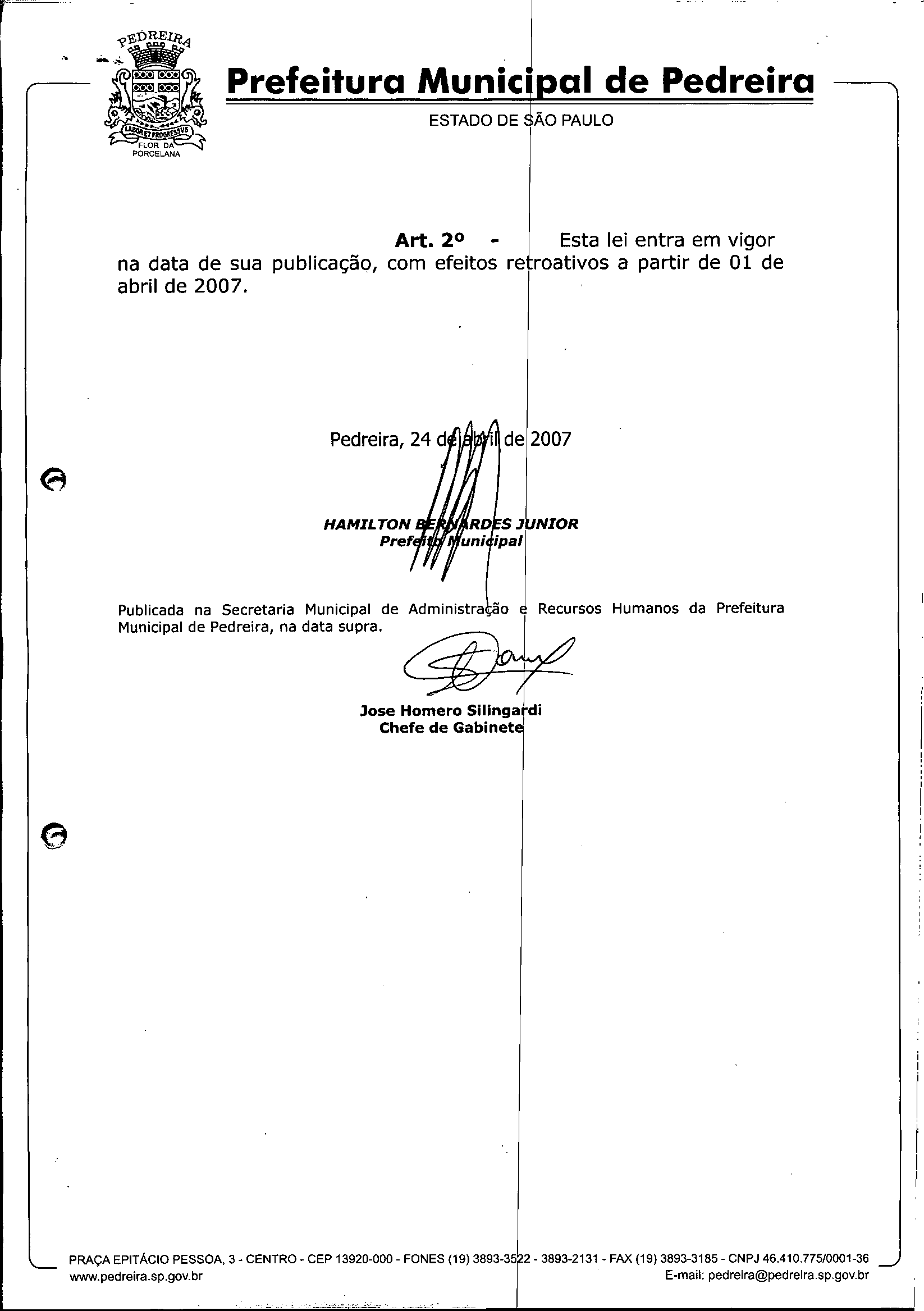 Lei Municipal - N° 2690 de 24/04/2007