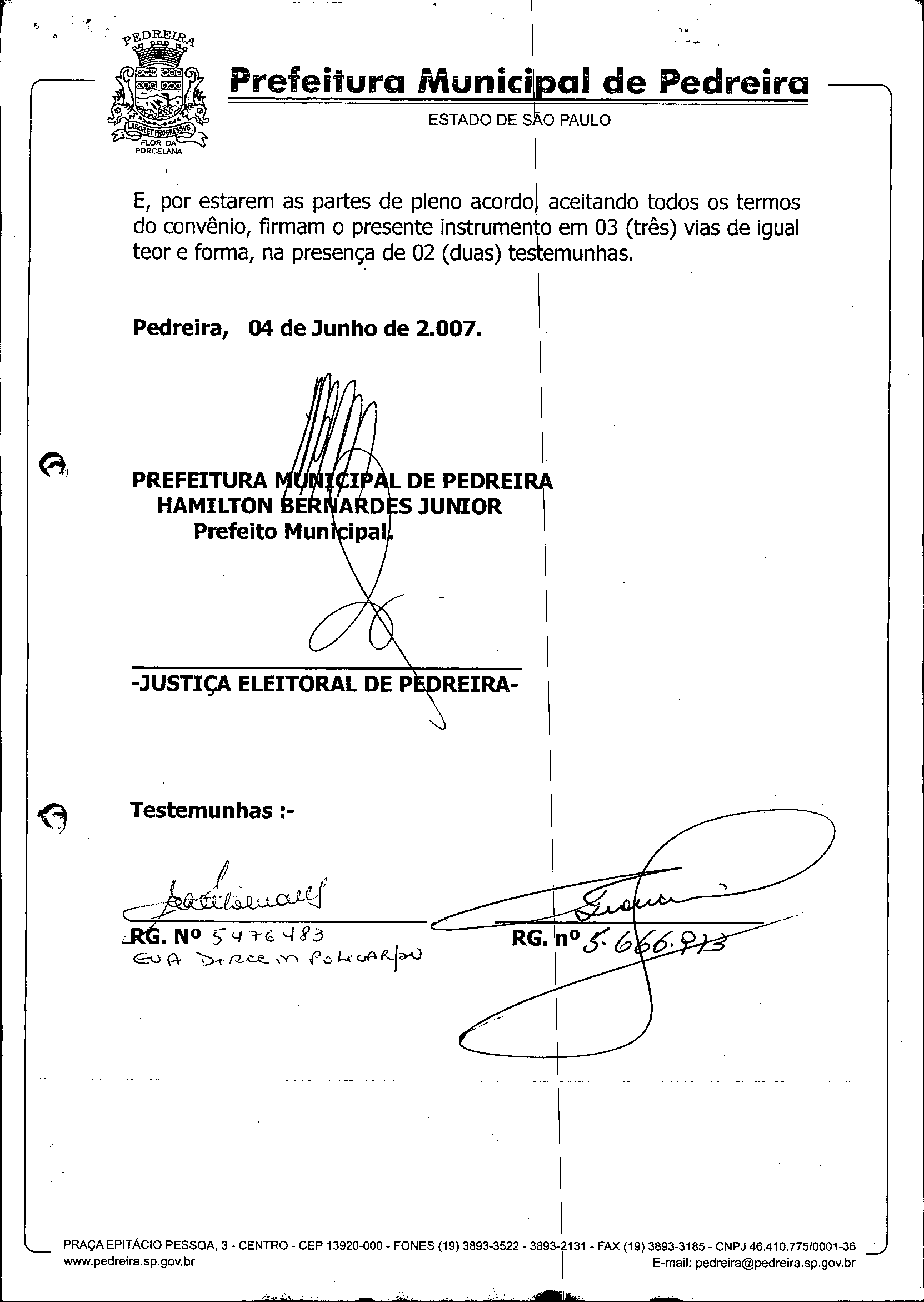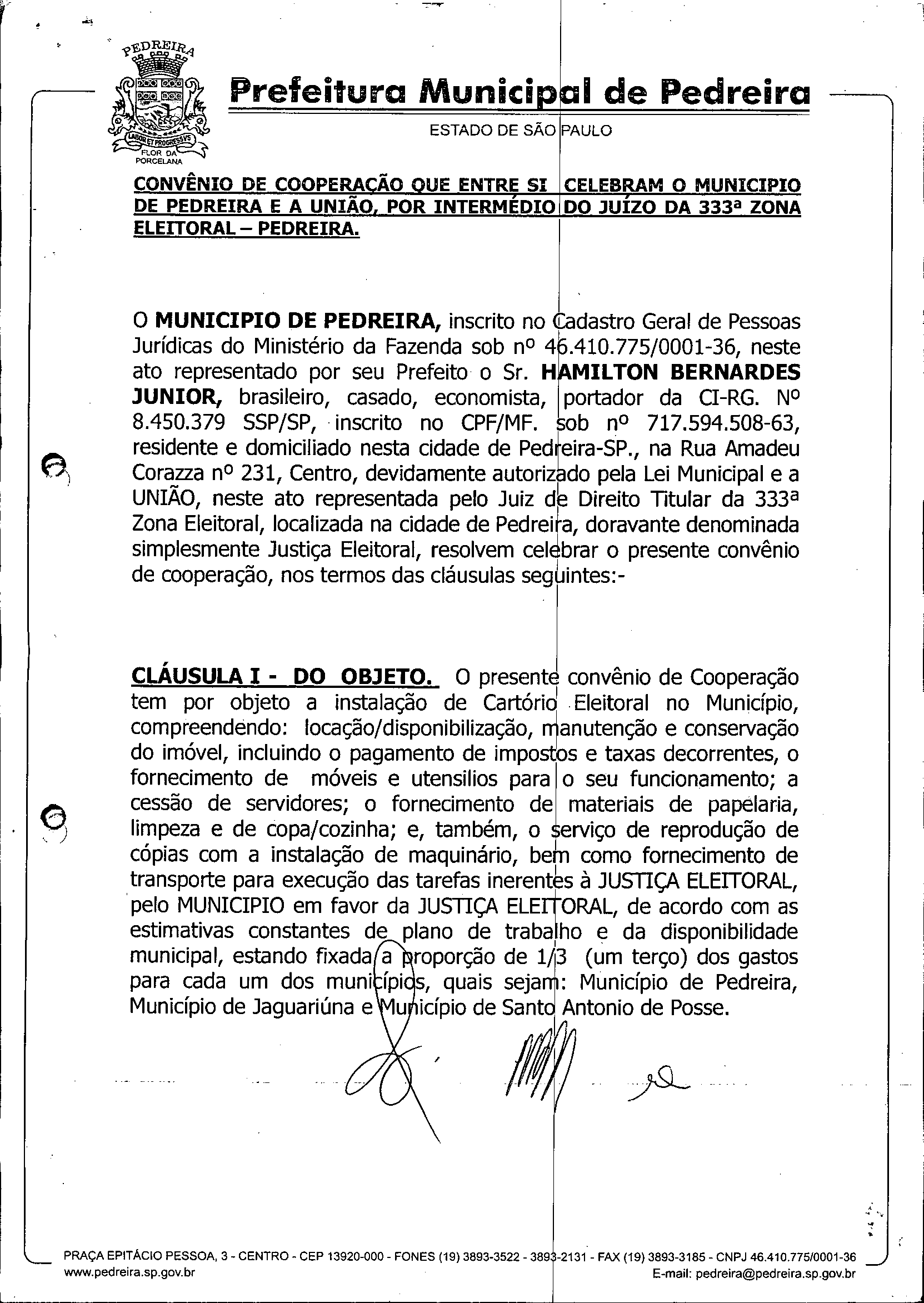 Ementa: Autoriza o Município a firmar Convênio de Cooperação com o Tribunal Regional Eleitoral do Estado e São Paulo e dá outras providências.