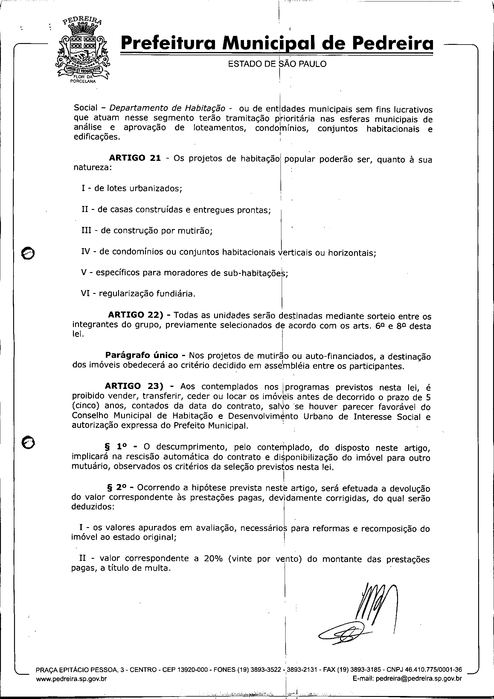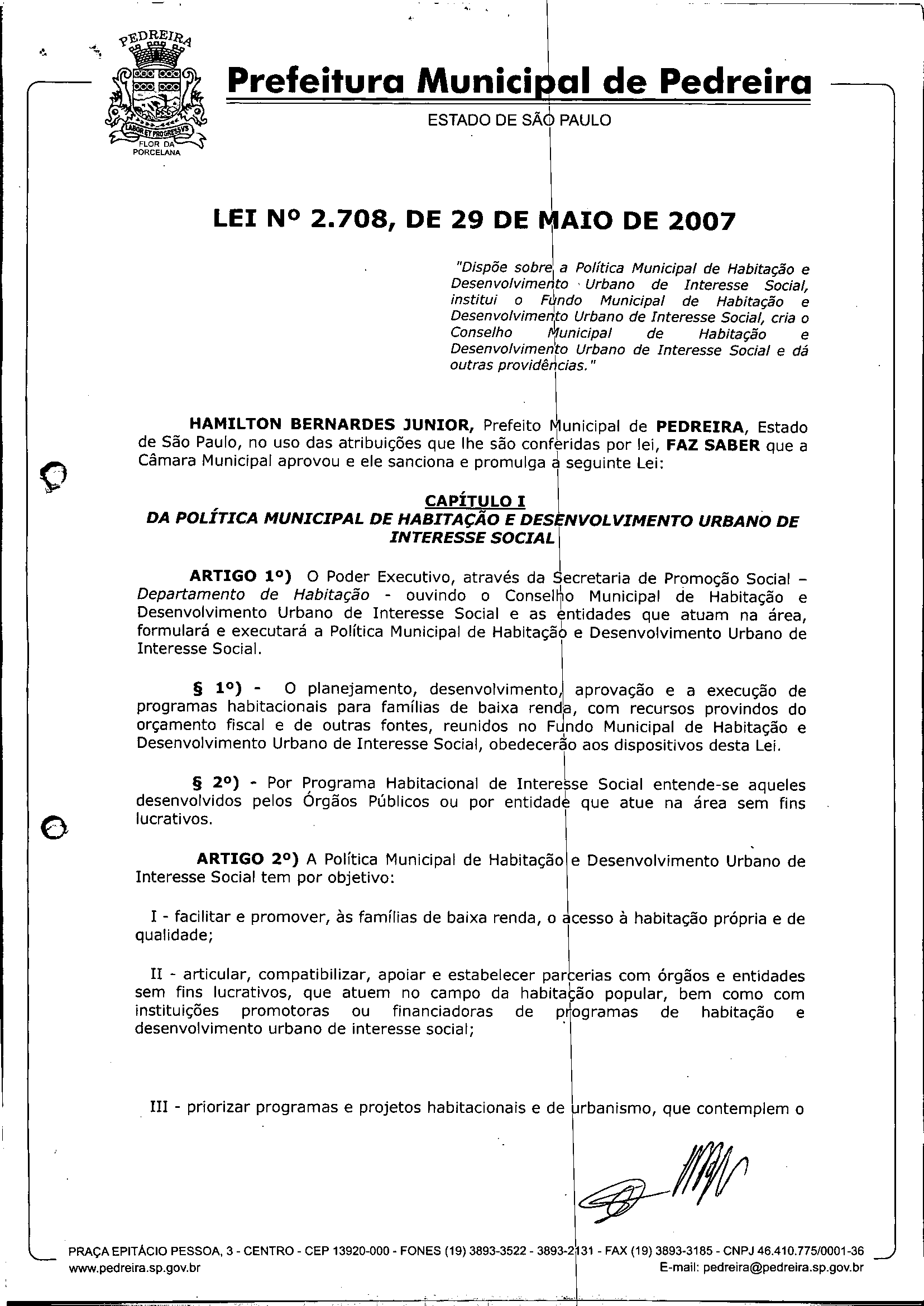 Ementa: Dispõe sobre a Política Municipal de Habitação e Desenvolvimento Urbano de Interesse Social, institui o Fundo Municipal de Habitação e Desenvolvimento Urbano de Interesse Social, cria o Conselho Municipal de Habitação Desenvolvimento Urbano de Interesse Social e dá outras providências