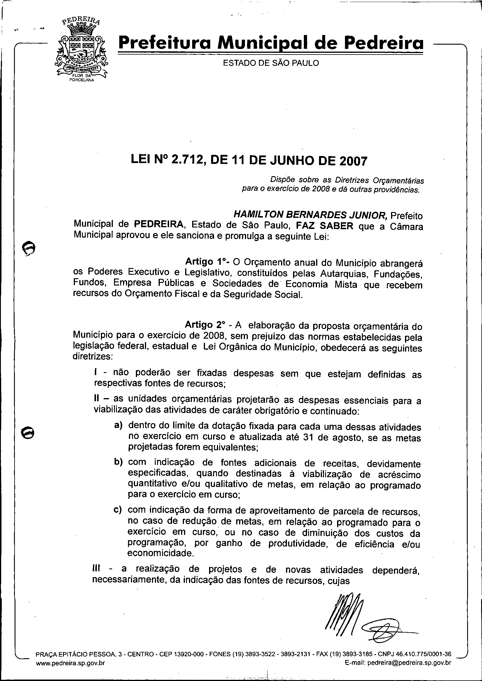 Lei Municipal - N° 2712 de 11/06/2007