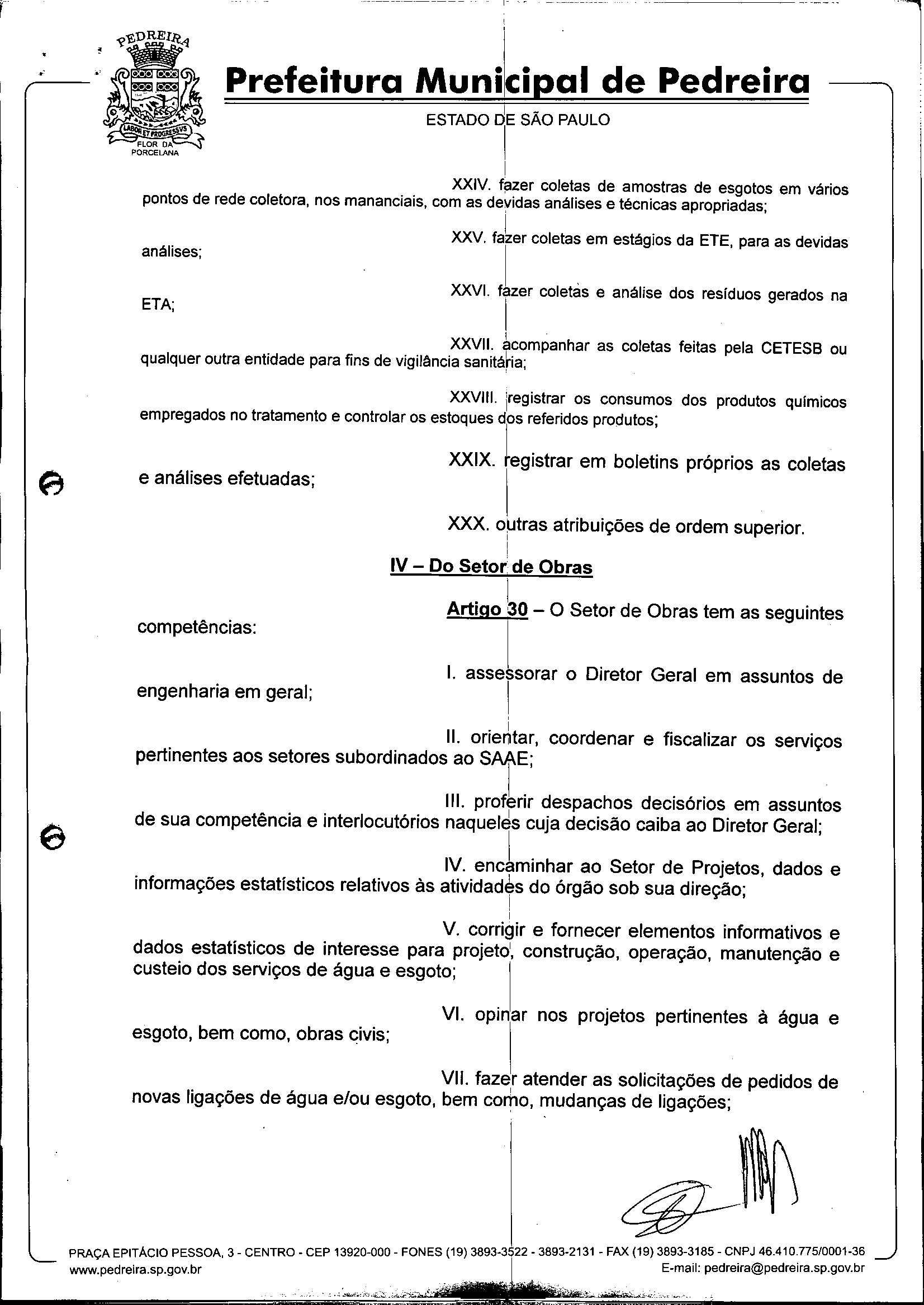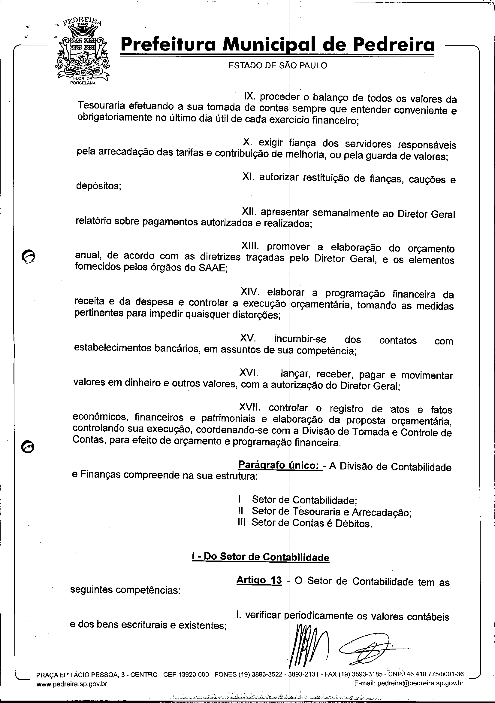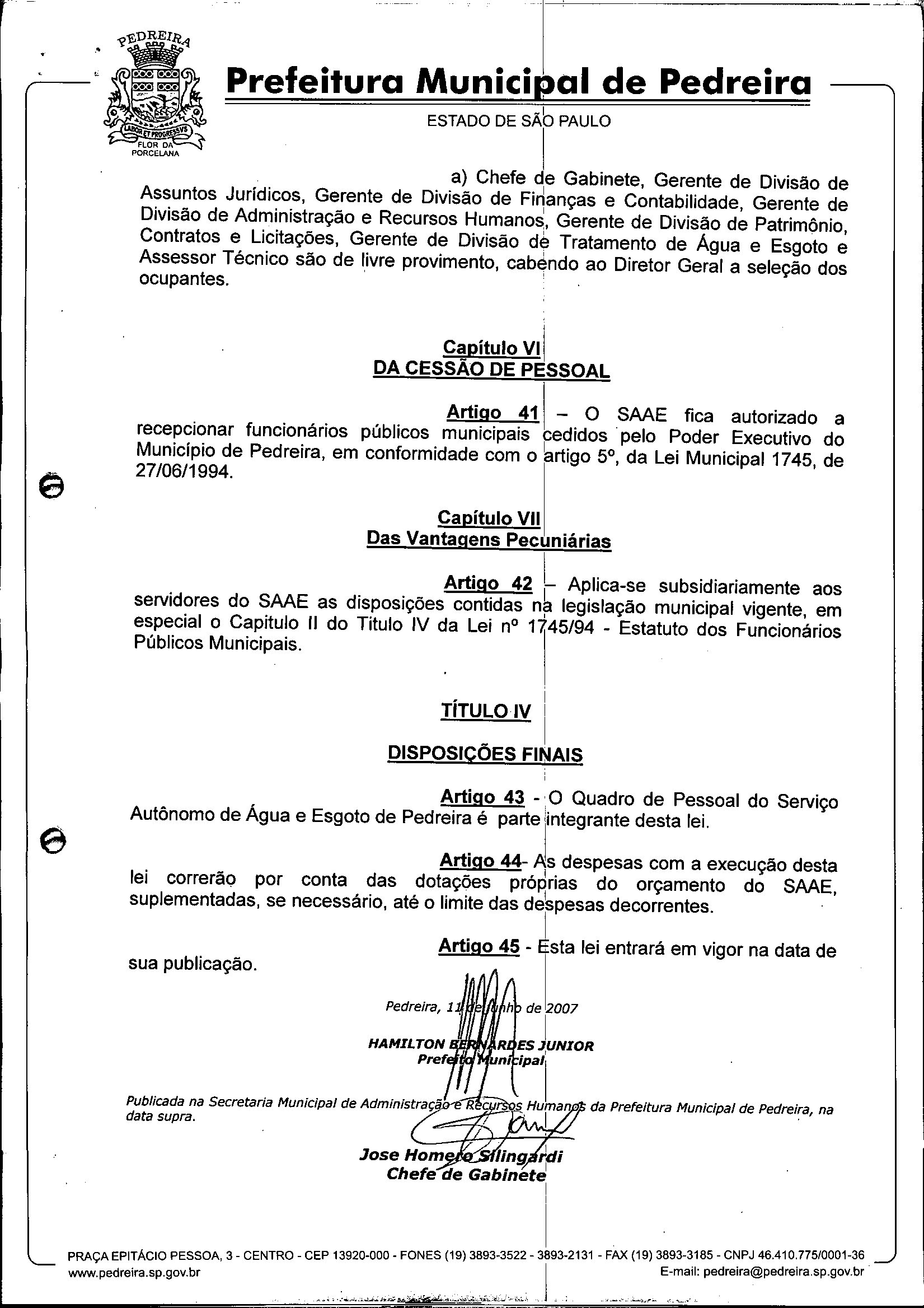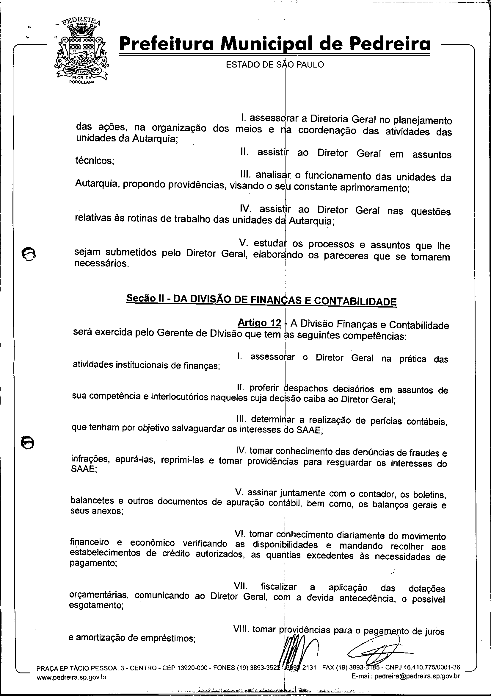 Ementa: Dispõe sobre o Regimento Interno e a estruturação administrativa e plano de cargos, empregos e salários do Serviço Autônomo de Água e Esgoto de Pedreira'- SAAE - e dá outras providências.