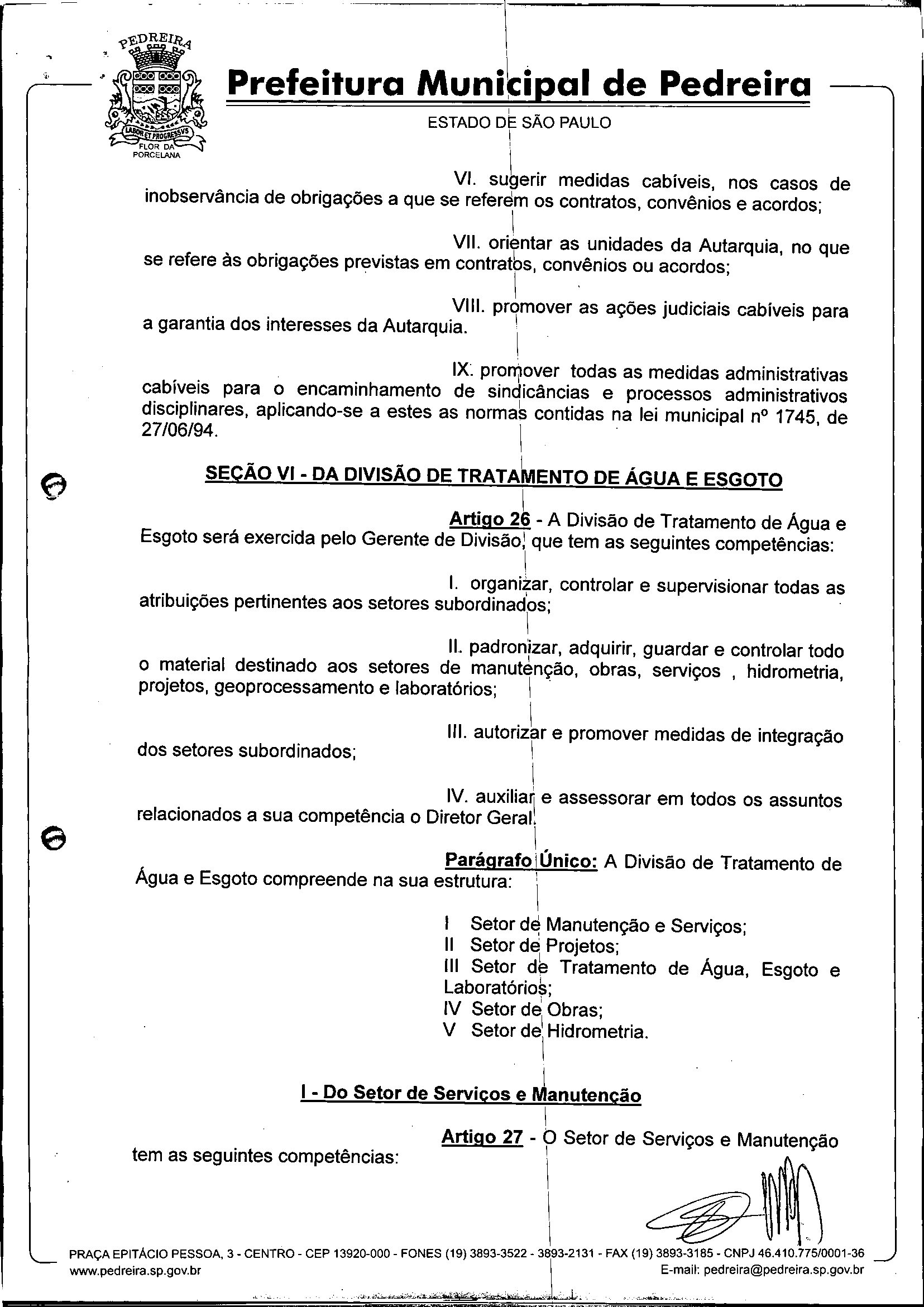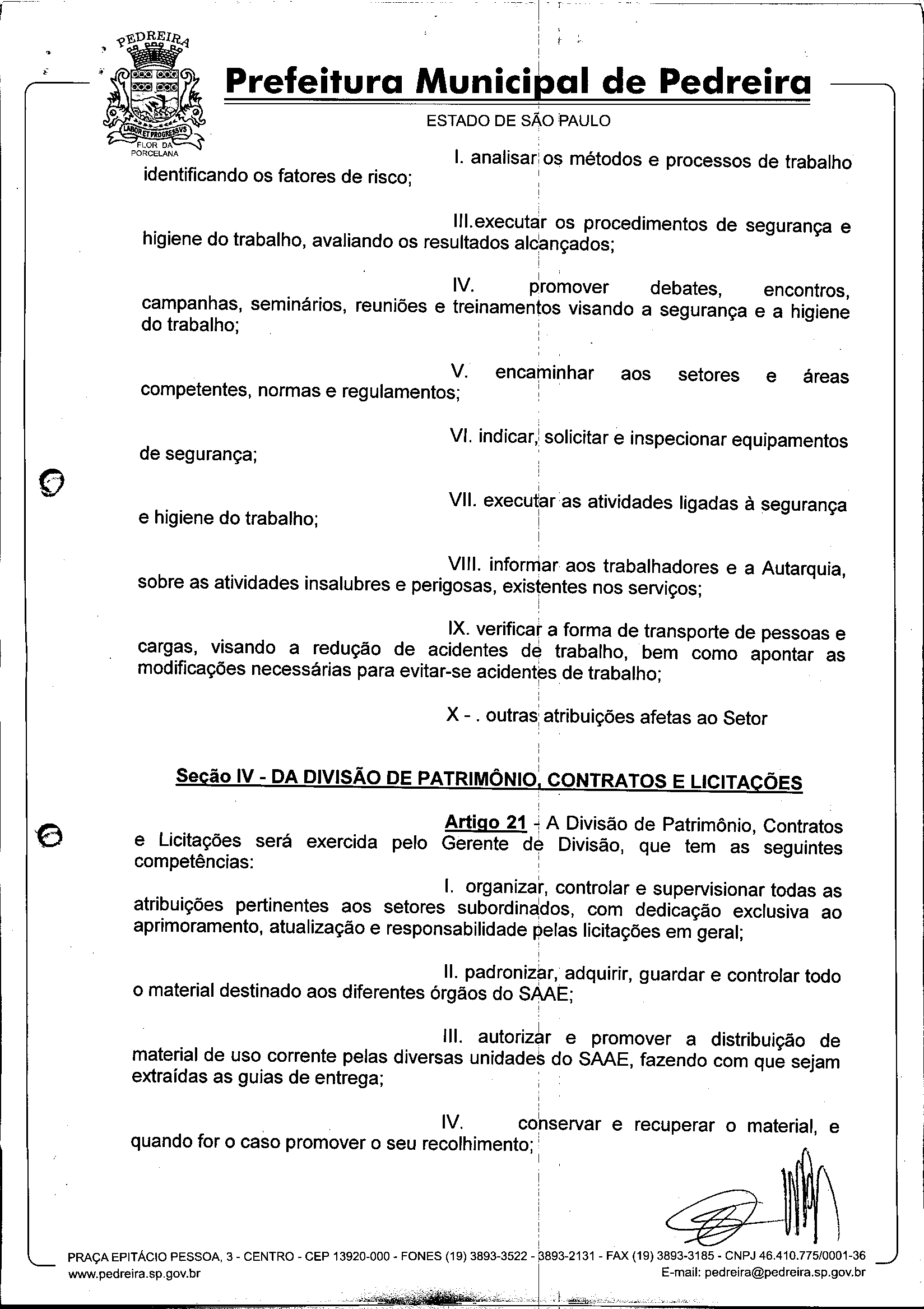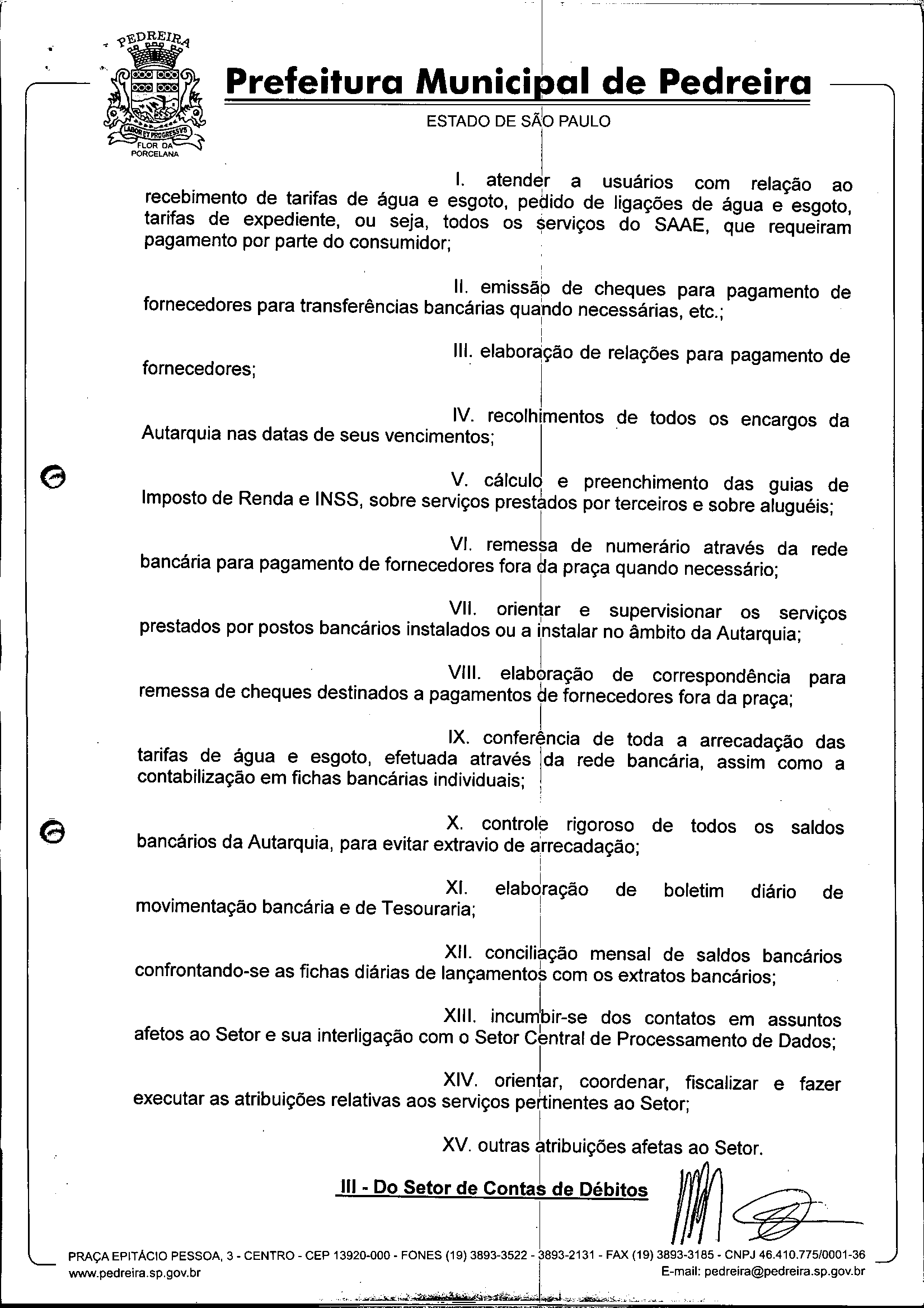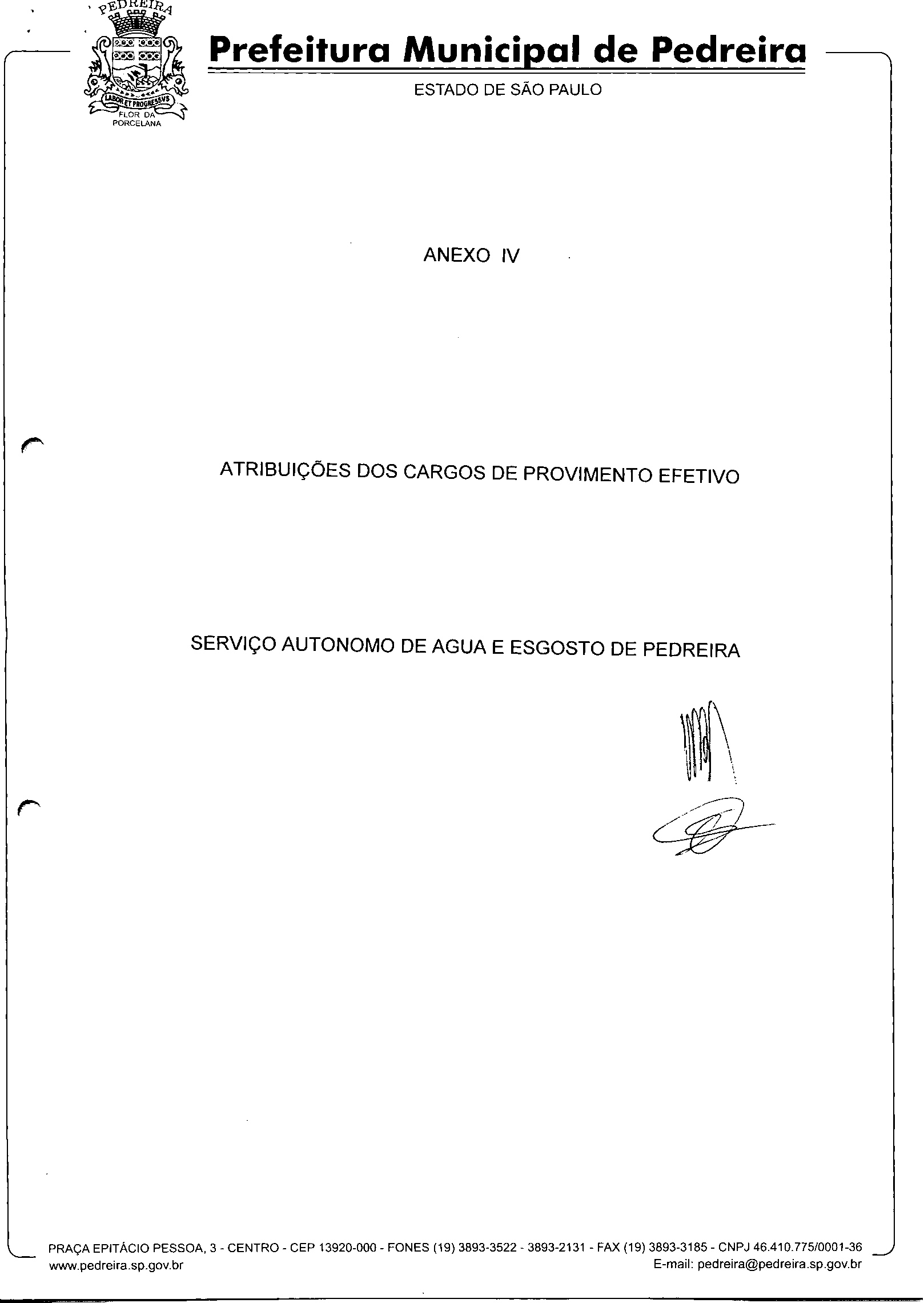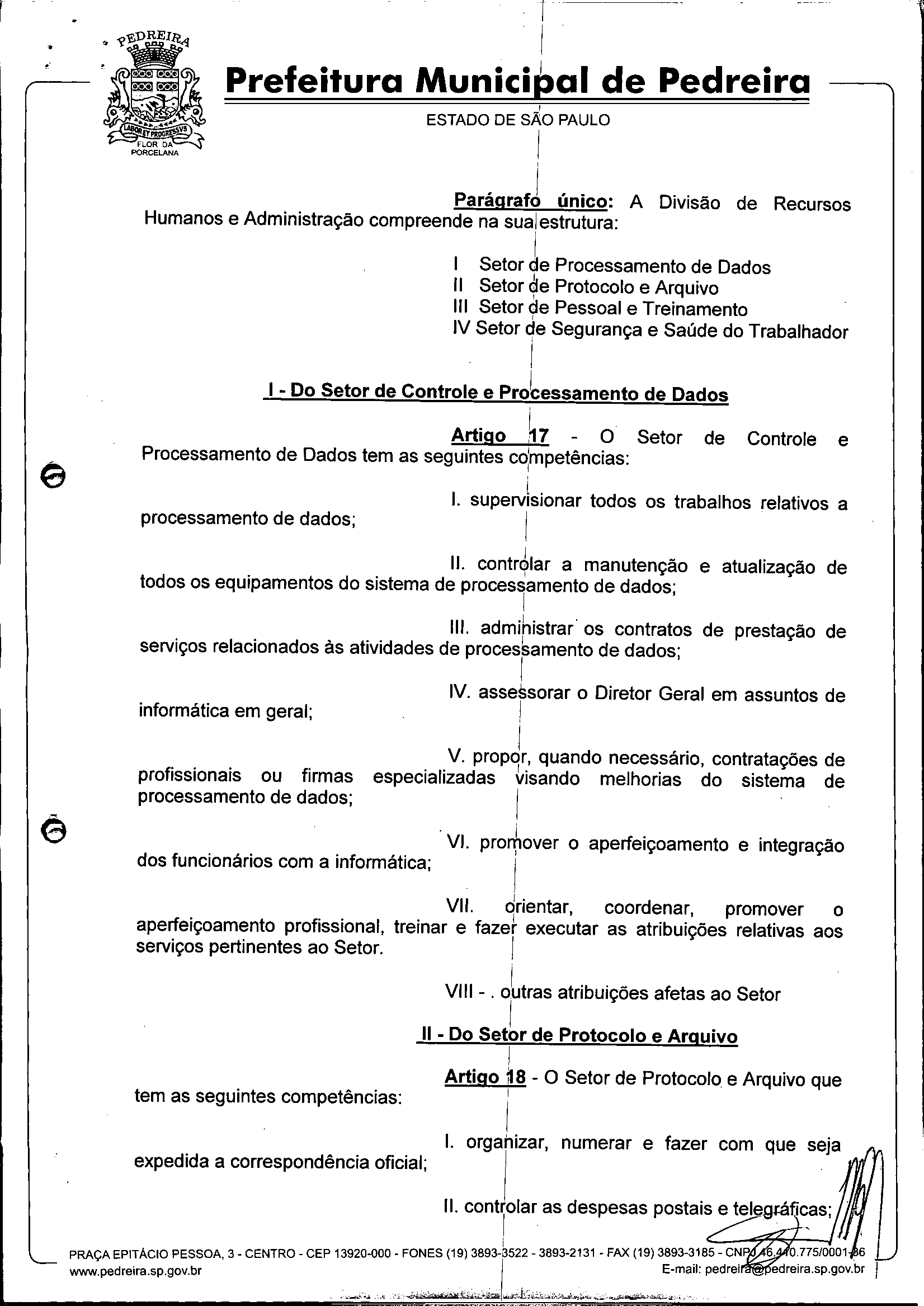 Ementa: Dispõe sobre o Regimento Interno e a estruturação administrativa e plano de cargos, empregos e salários do Serviço Autônomo de Água e Esgoto de Pedreira'- SAAE - e dá outras providências.