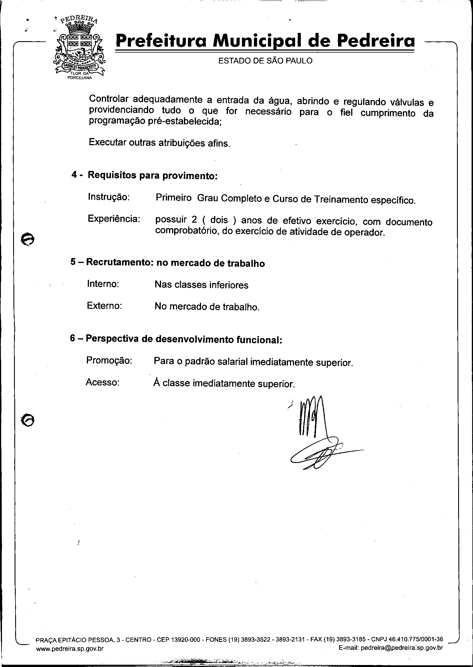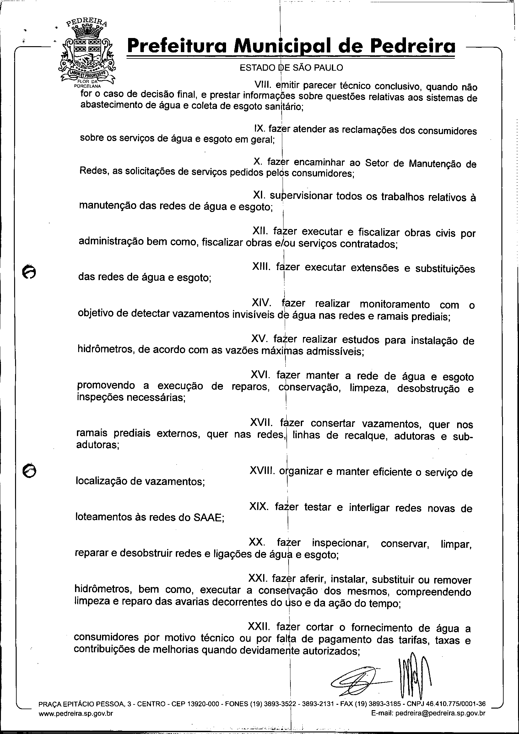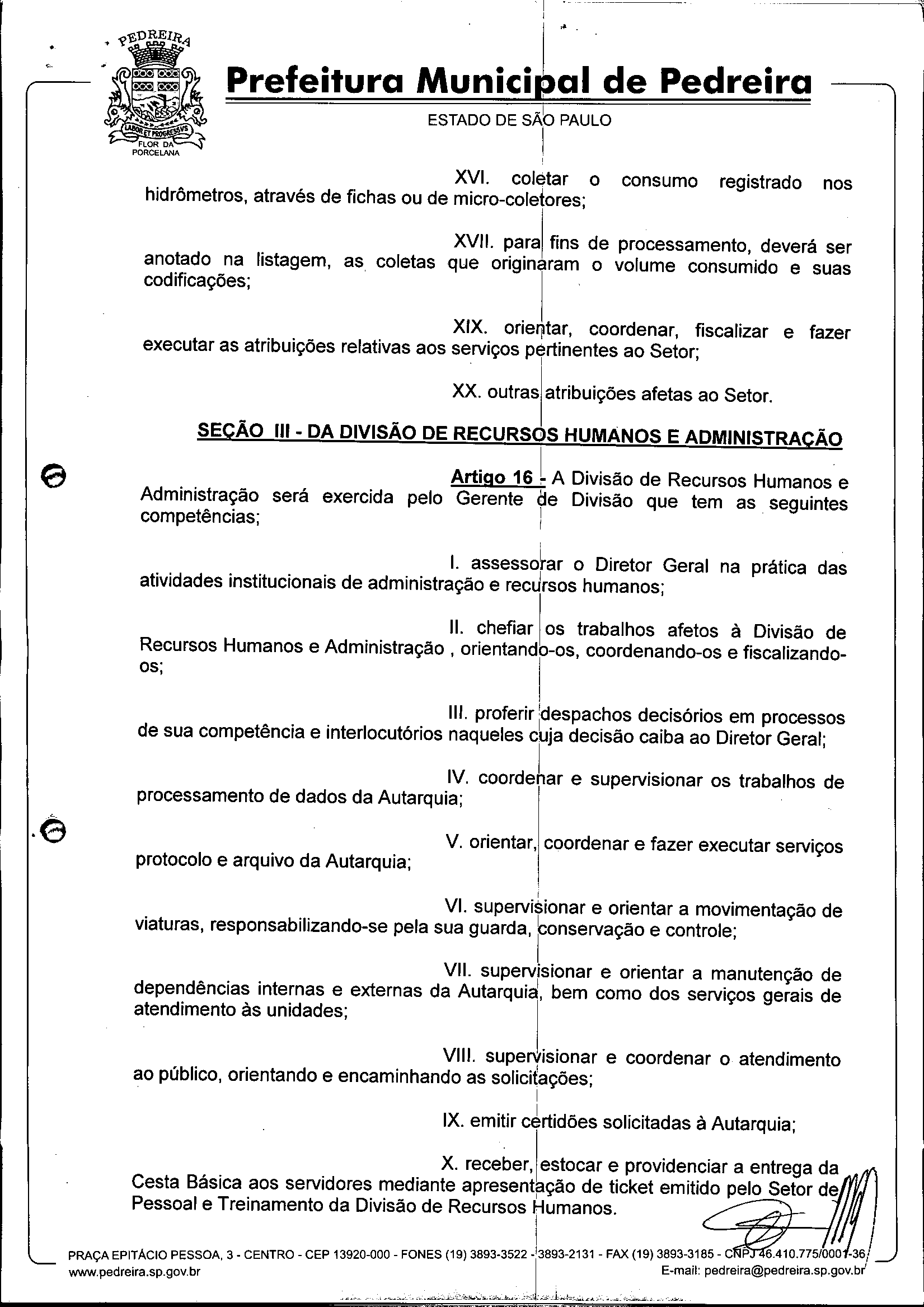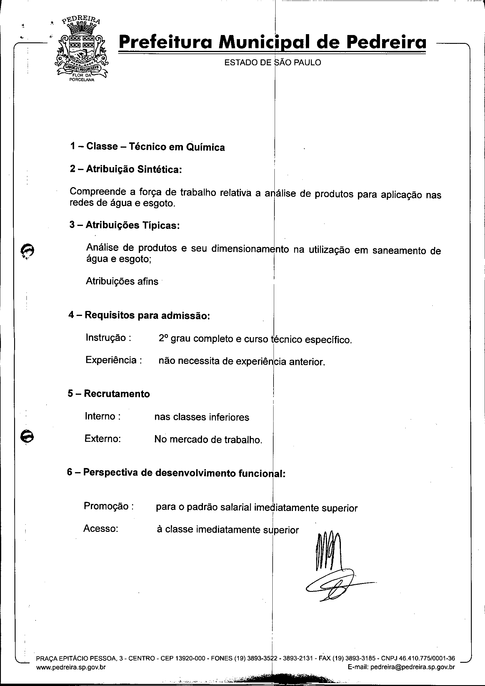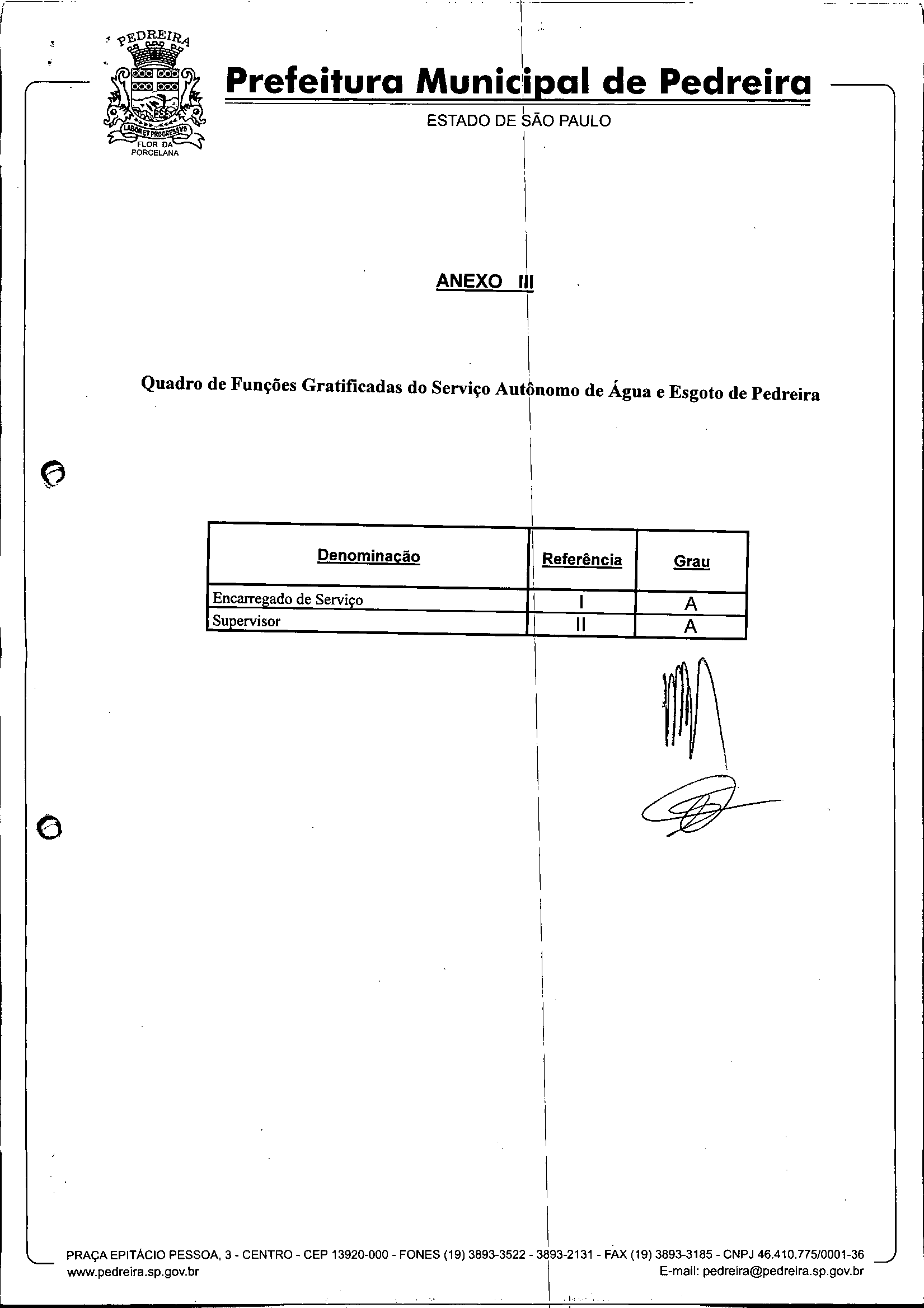 Ementa: Dispõe sobre o Regimento Interno e a estruturação administrativa e plano de cargos, empregos e salários do Serviço Autônomo de Água e Esgoto de Pedreira'- SAAE - e dá outras providências.