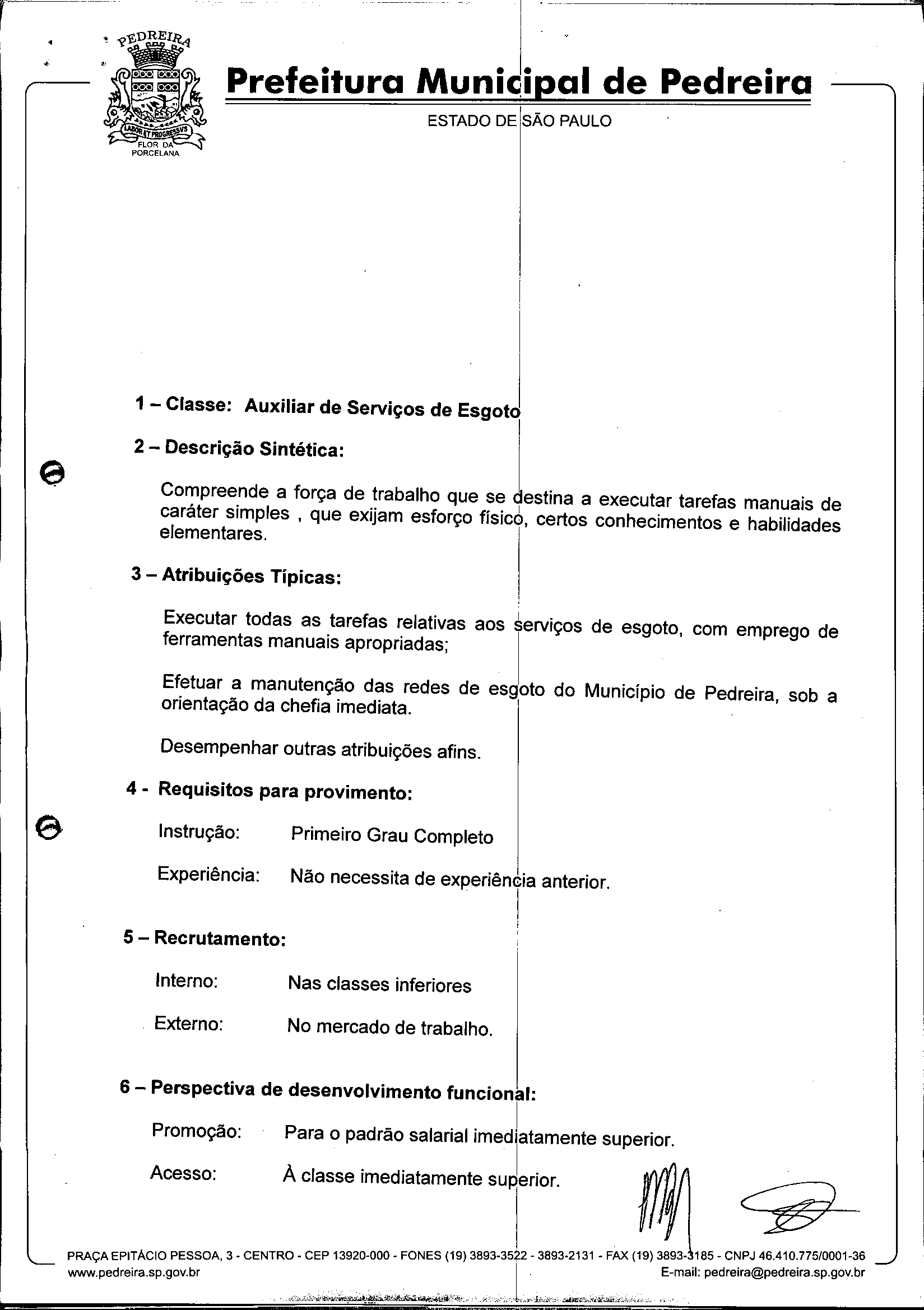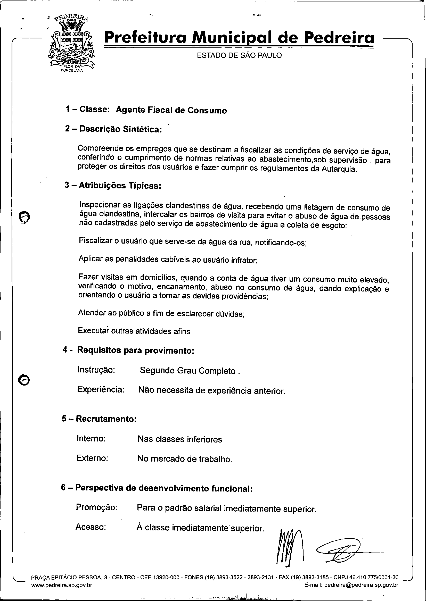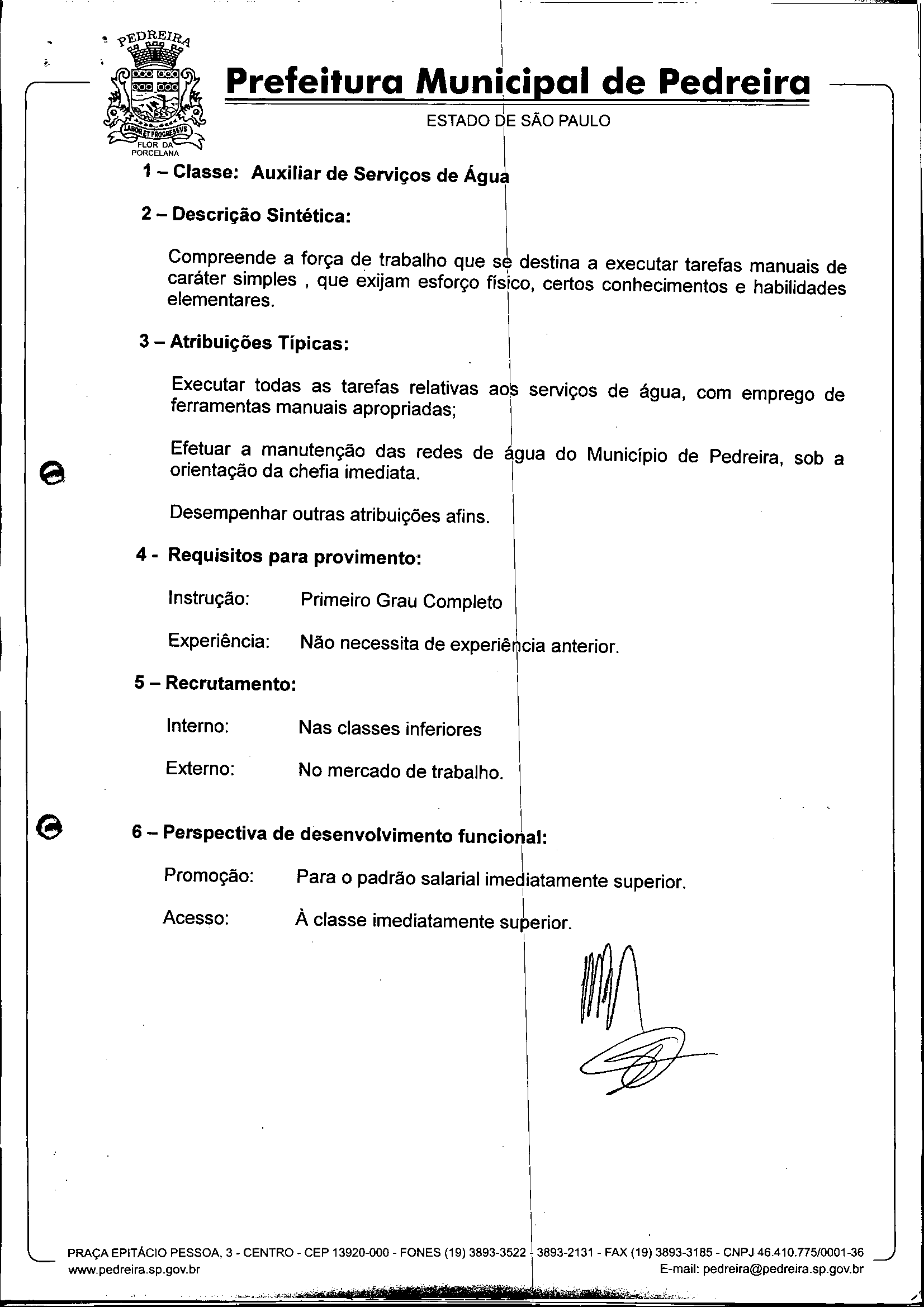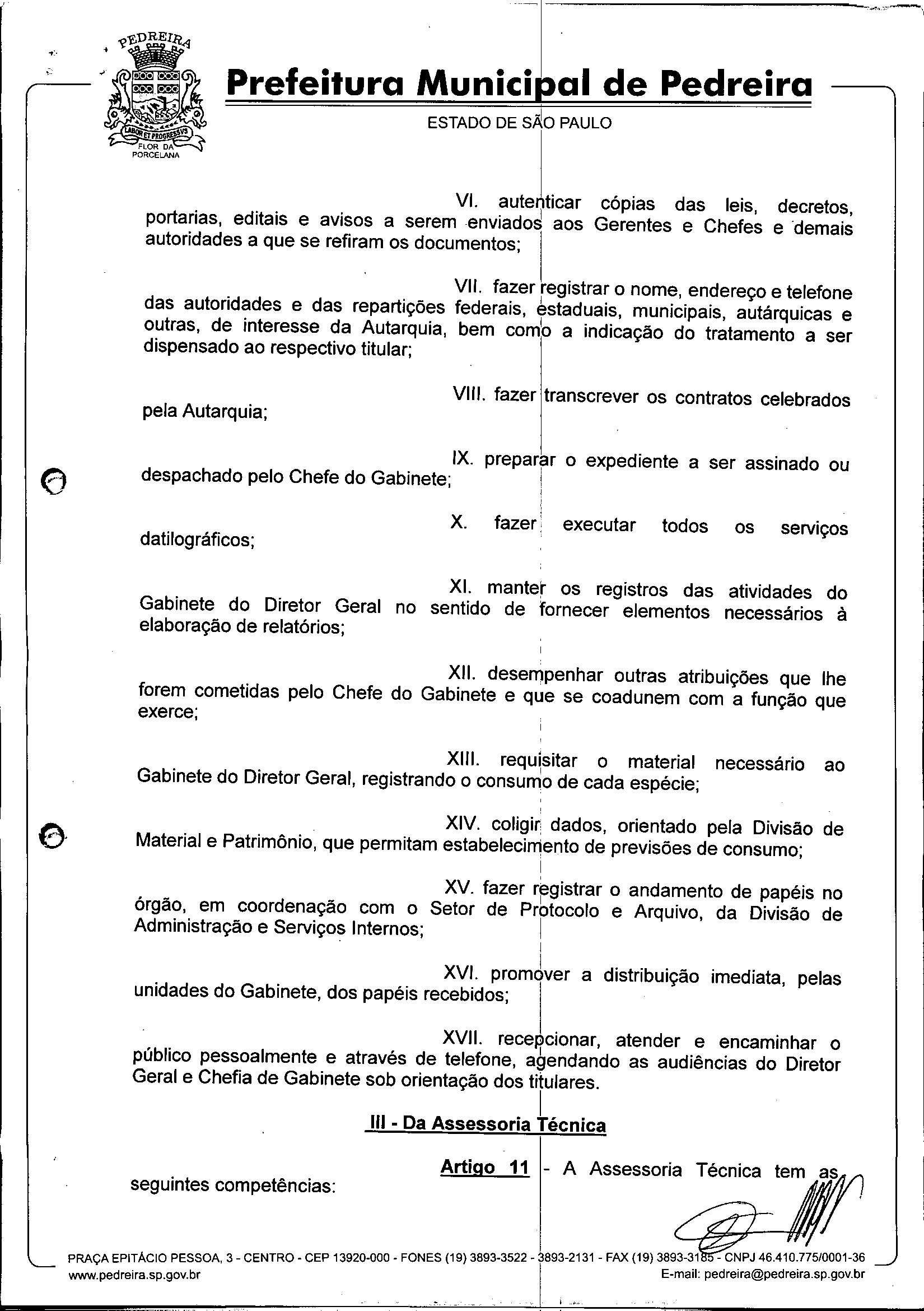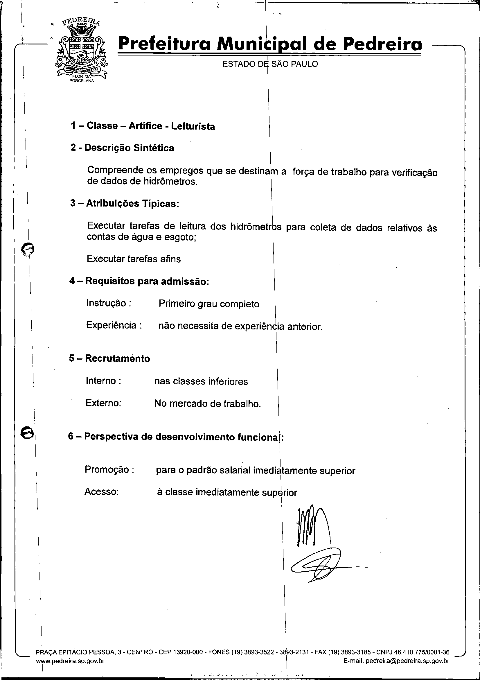 Ementa: Dispõe sobre o Regimento Interno e a estruturação administrativa e plano de cargos, empregos e salários do Serviço Autônomo de Água e Esgoto de Pedreira'- SAAE - e dá outras providências.
