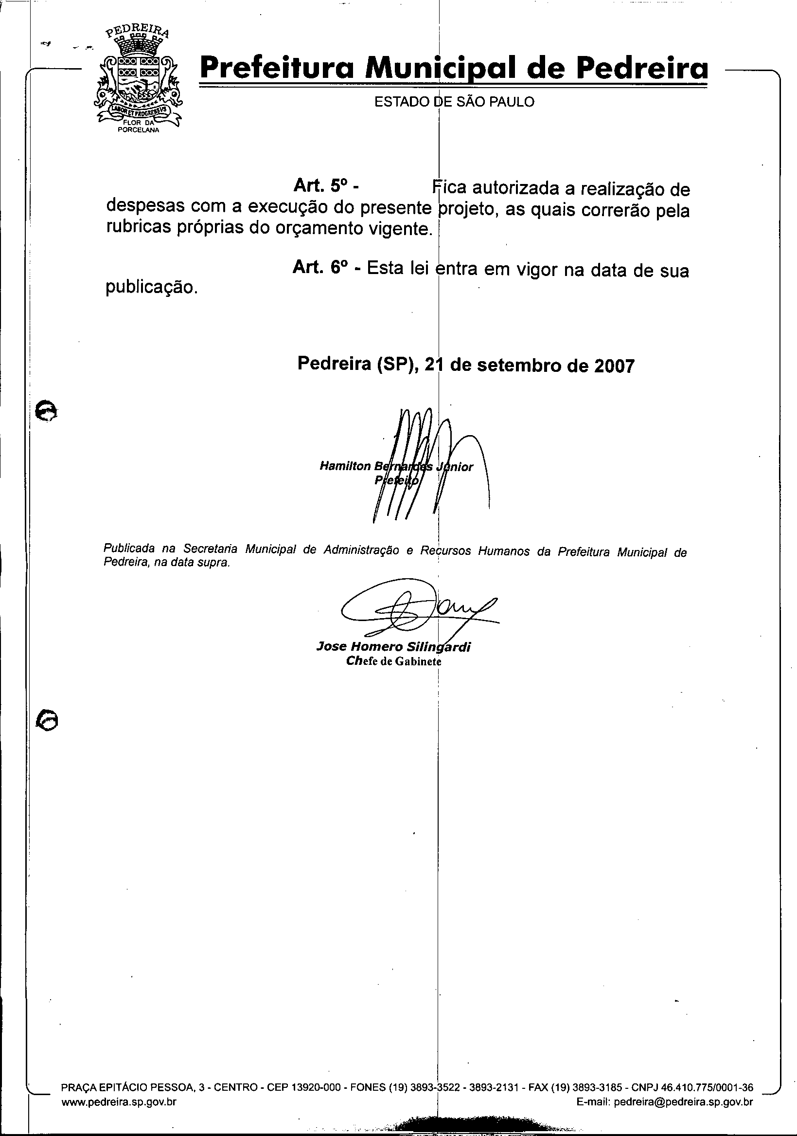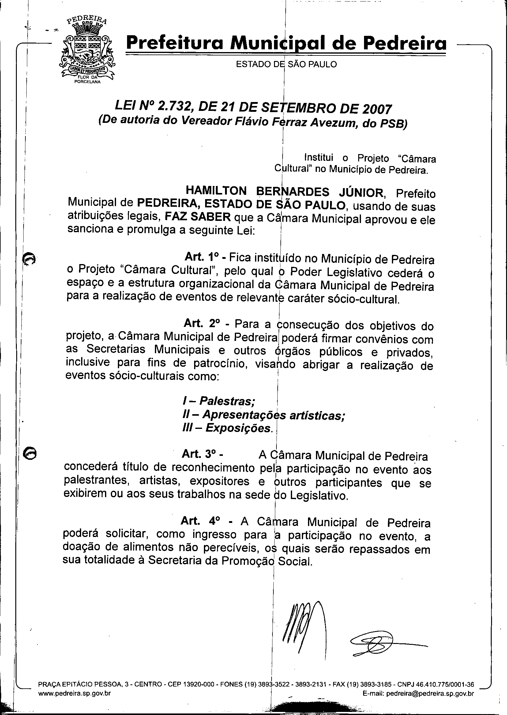 Lei Municipal - N° 2732 de 21/09/2007