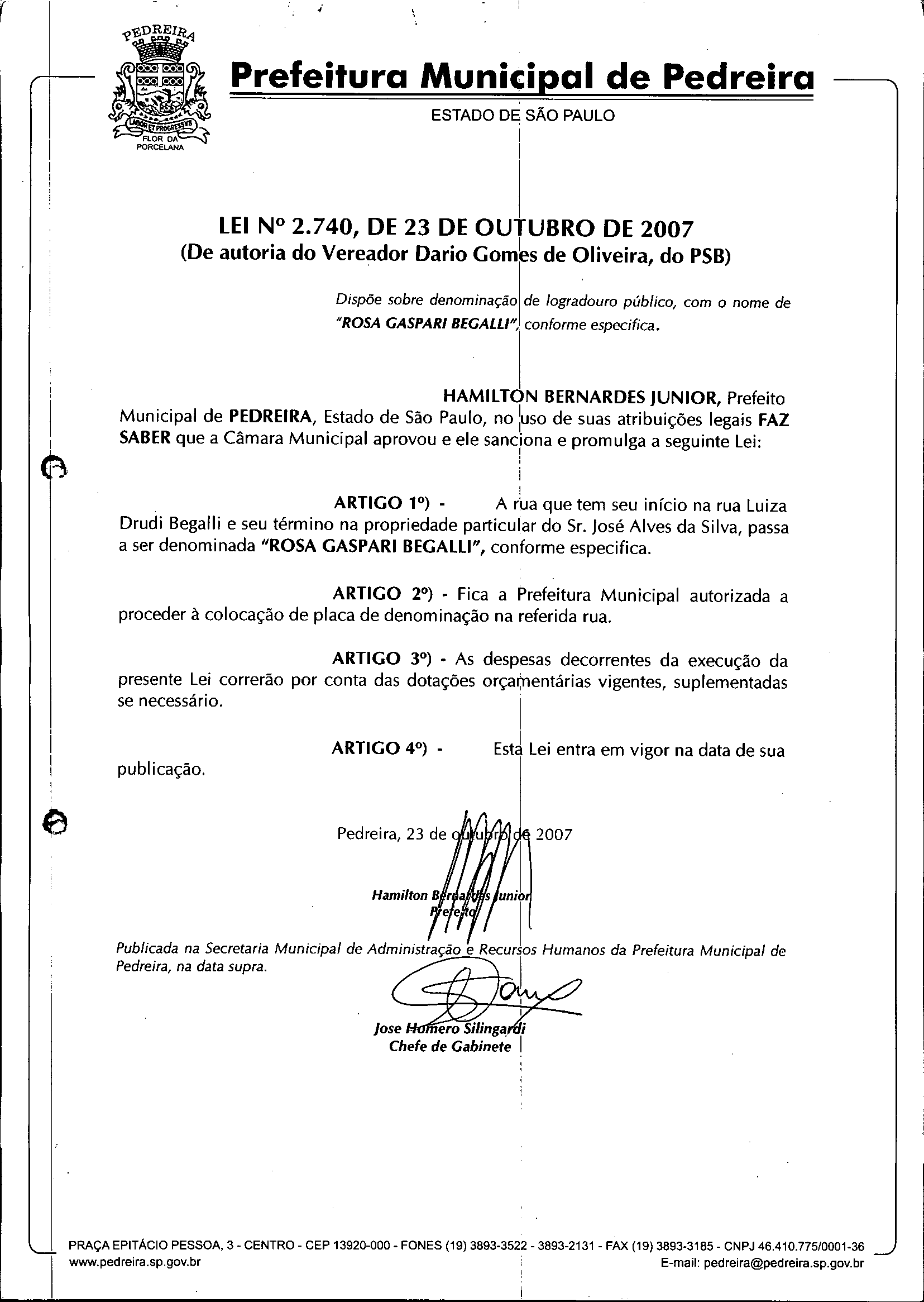 Ementa: Dispõe sobre denominação 'ROSA CASPARI BECALLI", de logradouro público, com o nome de conforme especifica.