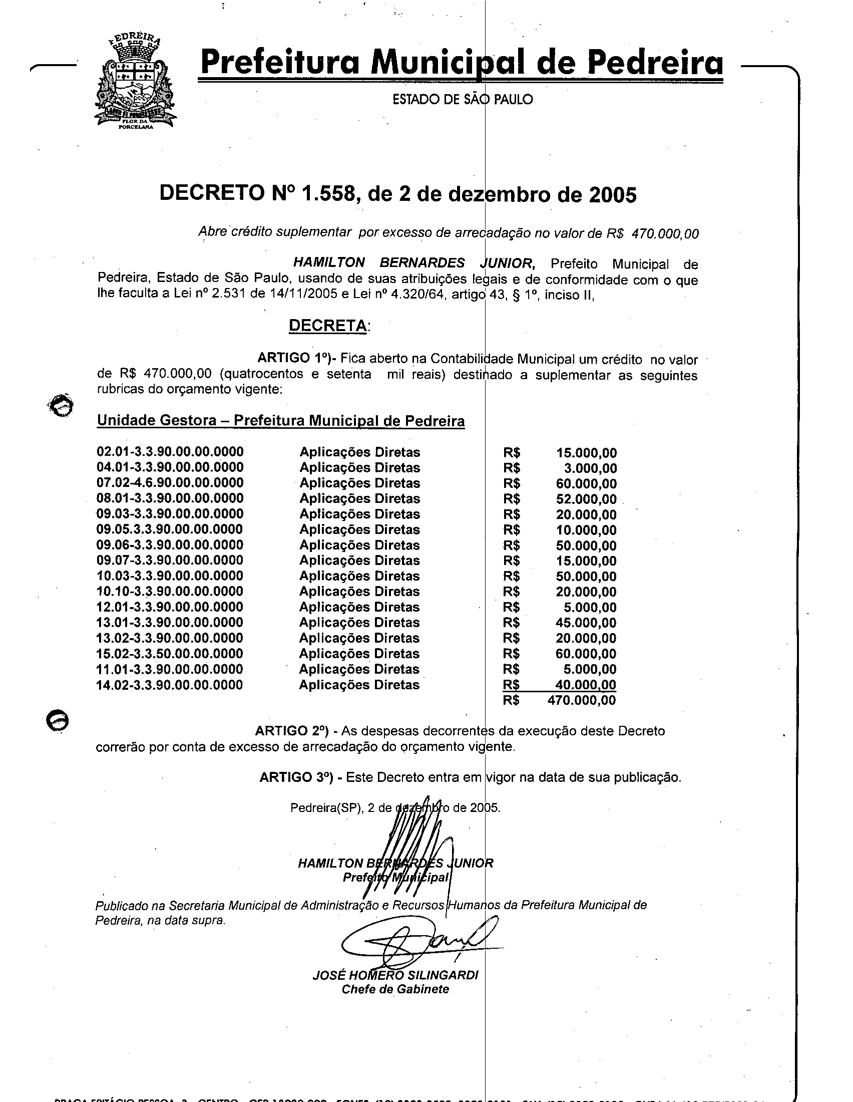 Decreto - N° 1558 de 02/12/2005