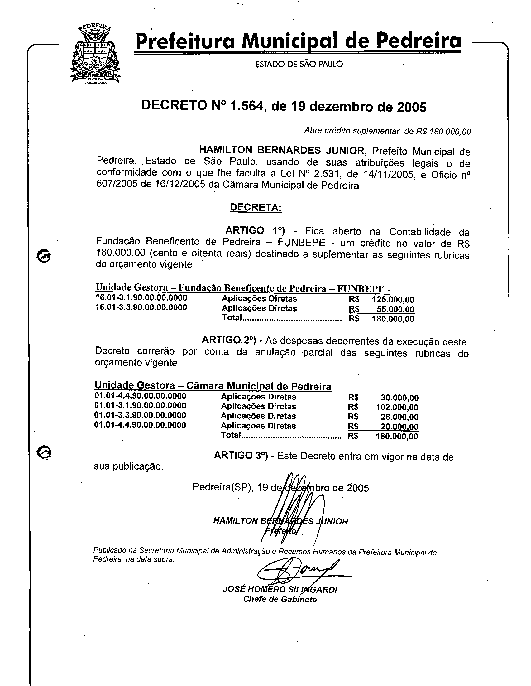 Ementa: Abre crédito suplementar no valor de RS 830.000,00.