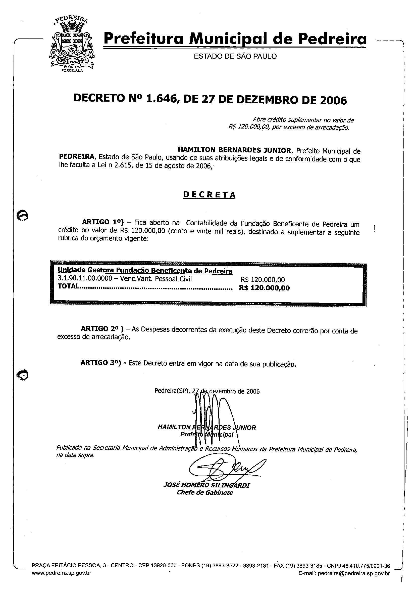 Ementa: Abre crédito suplementar no valor de R$ 120.000,00.