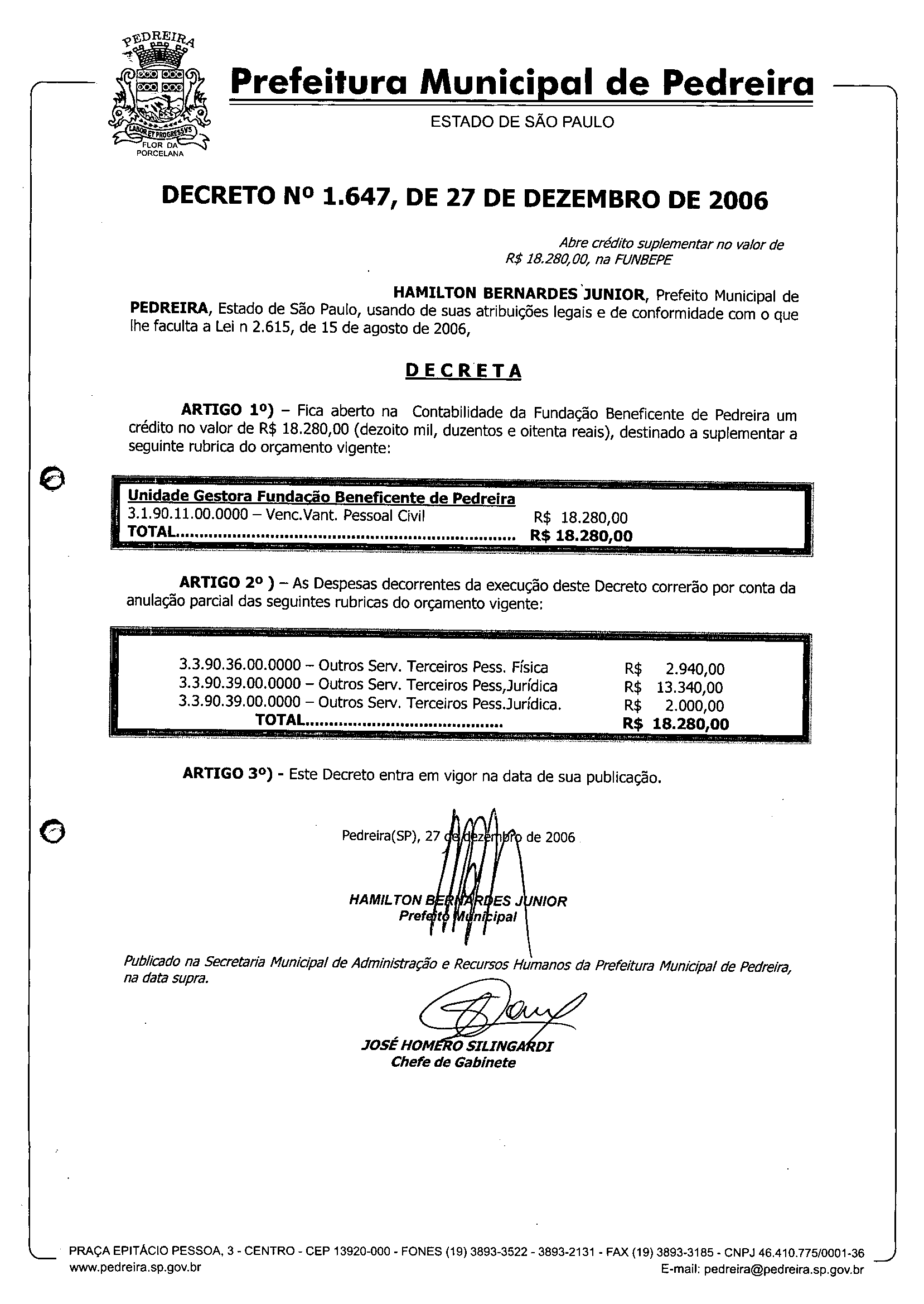 Ementa: Abre crédito suplementar no valor de R$ 18.280,00.