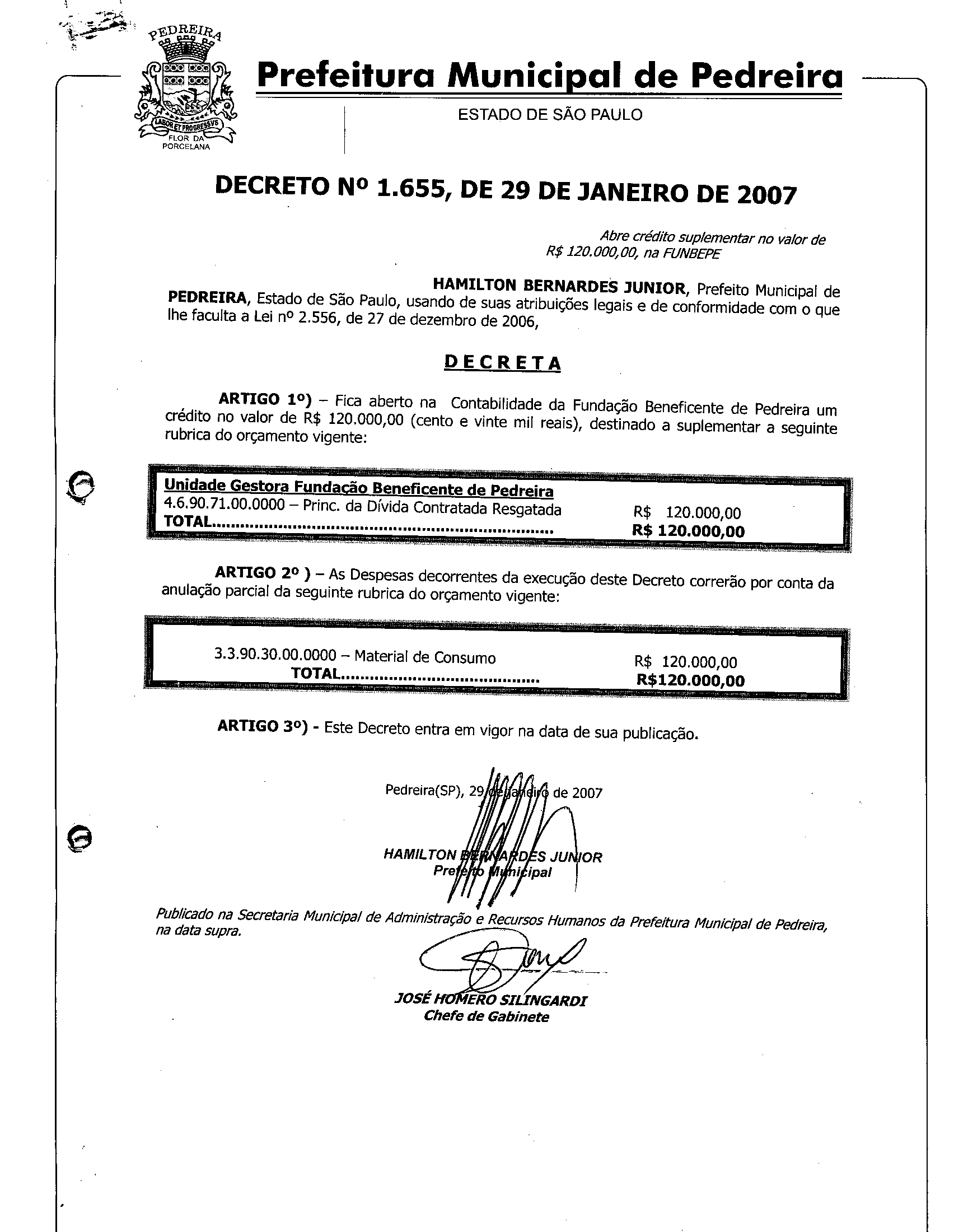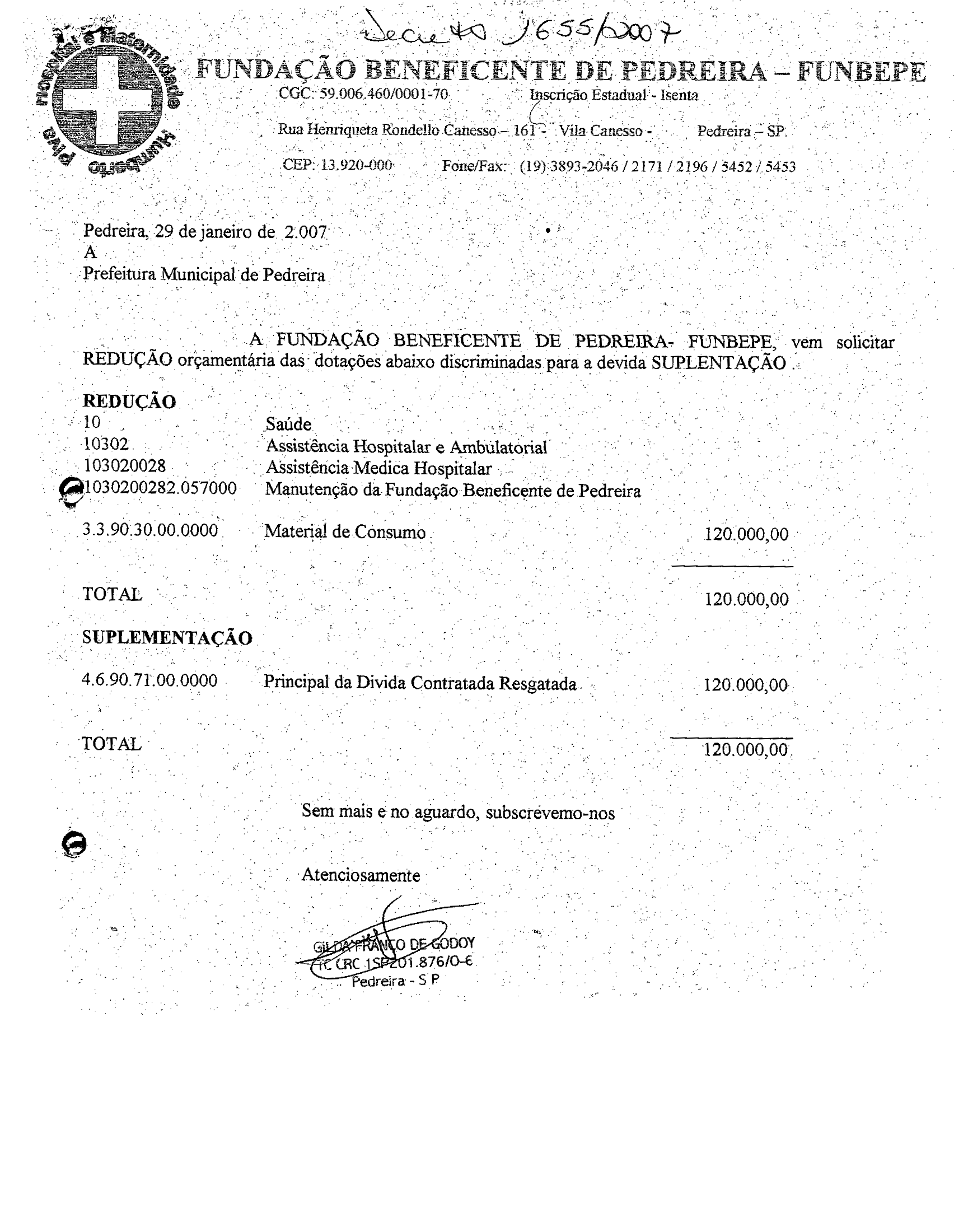 Ementa: Abre crédito suplementar no valor de R$ 120.000,00, na FUNBEPE.