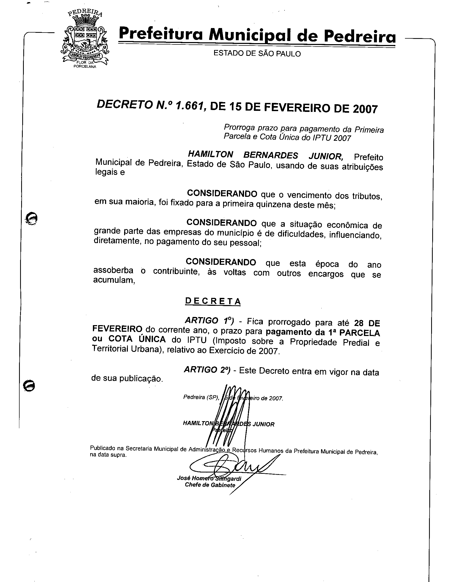 Decreto - N° 1661 de 15/02/2007