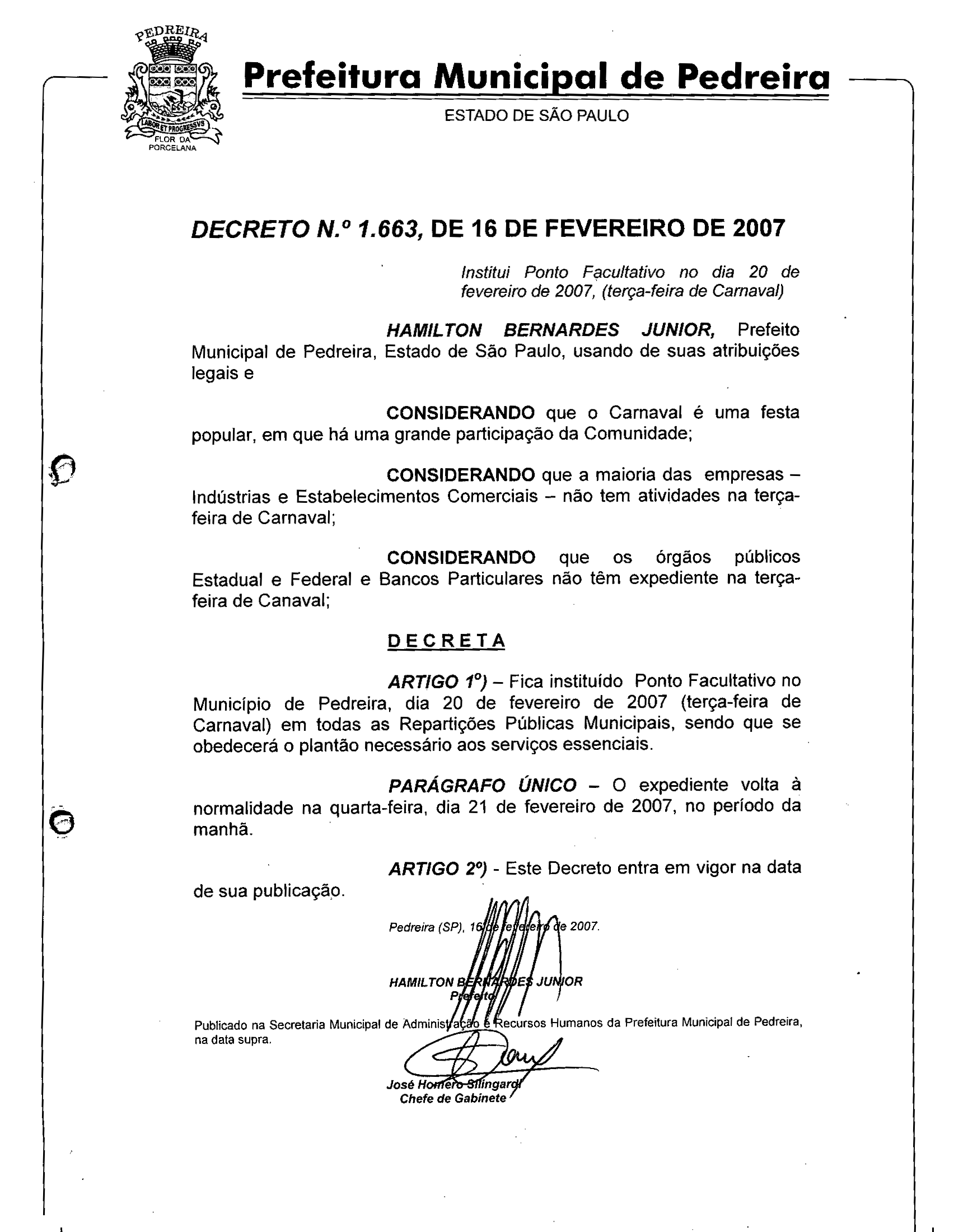 Decreto - N° 1663 de 16/02/2007