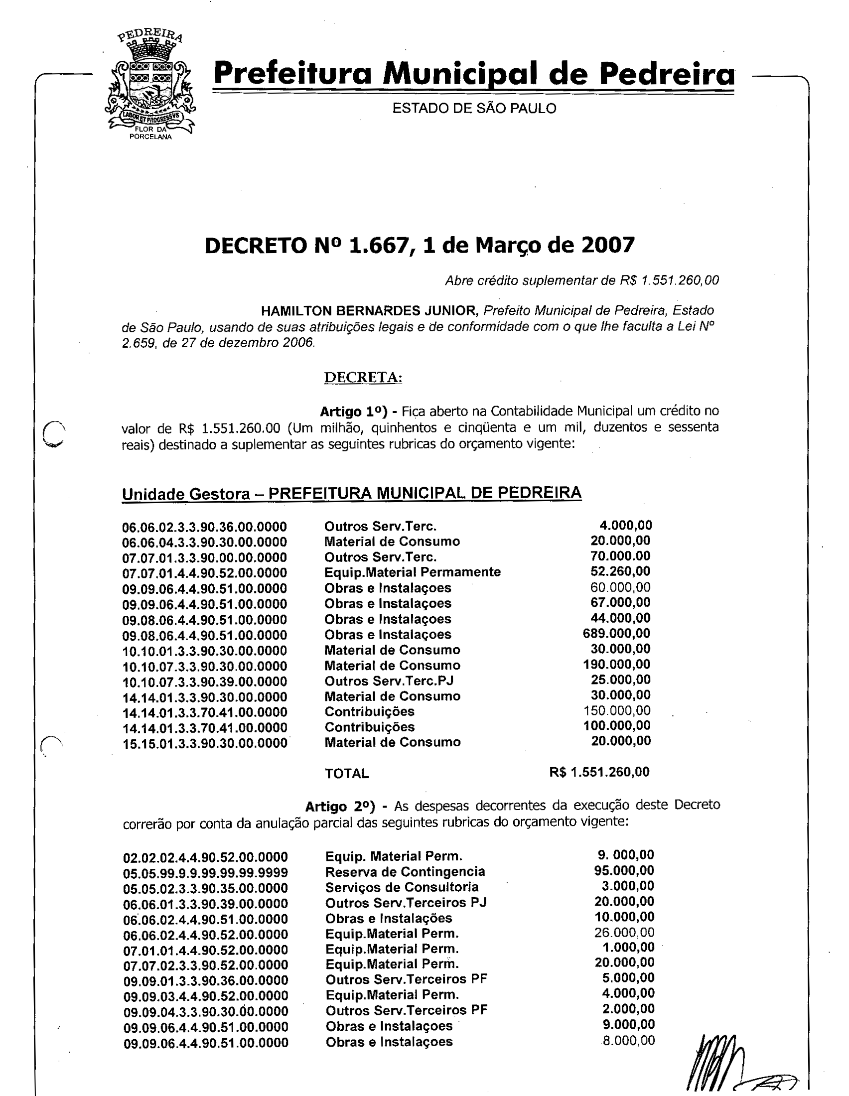 Decreto - N° 1667 de 01/03/2007