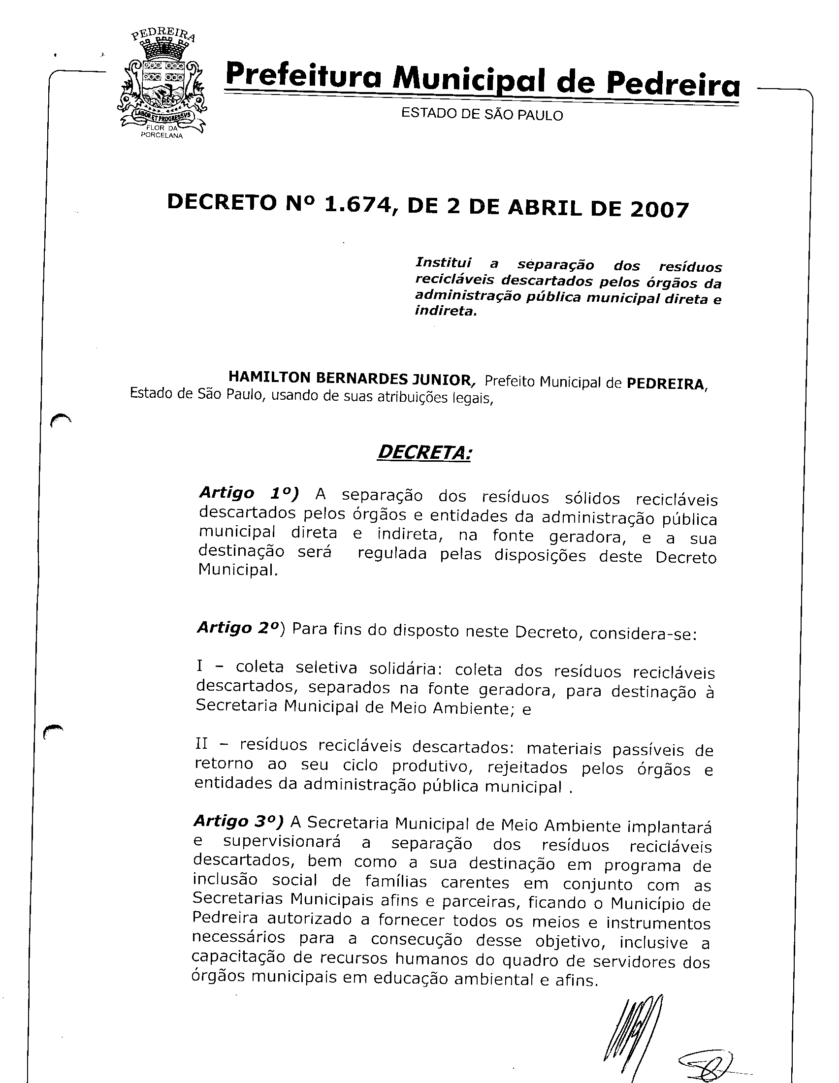 Decreto - N° 1674 de 02/04/2007