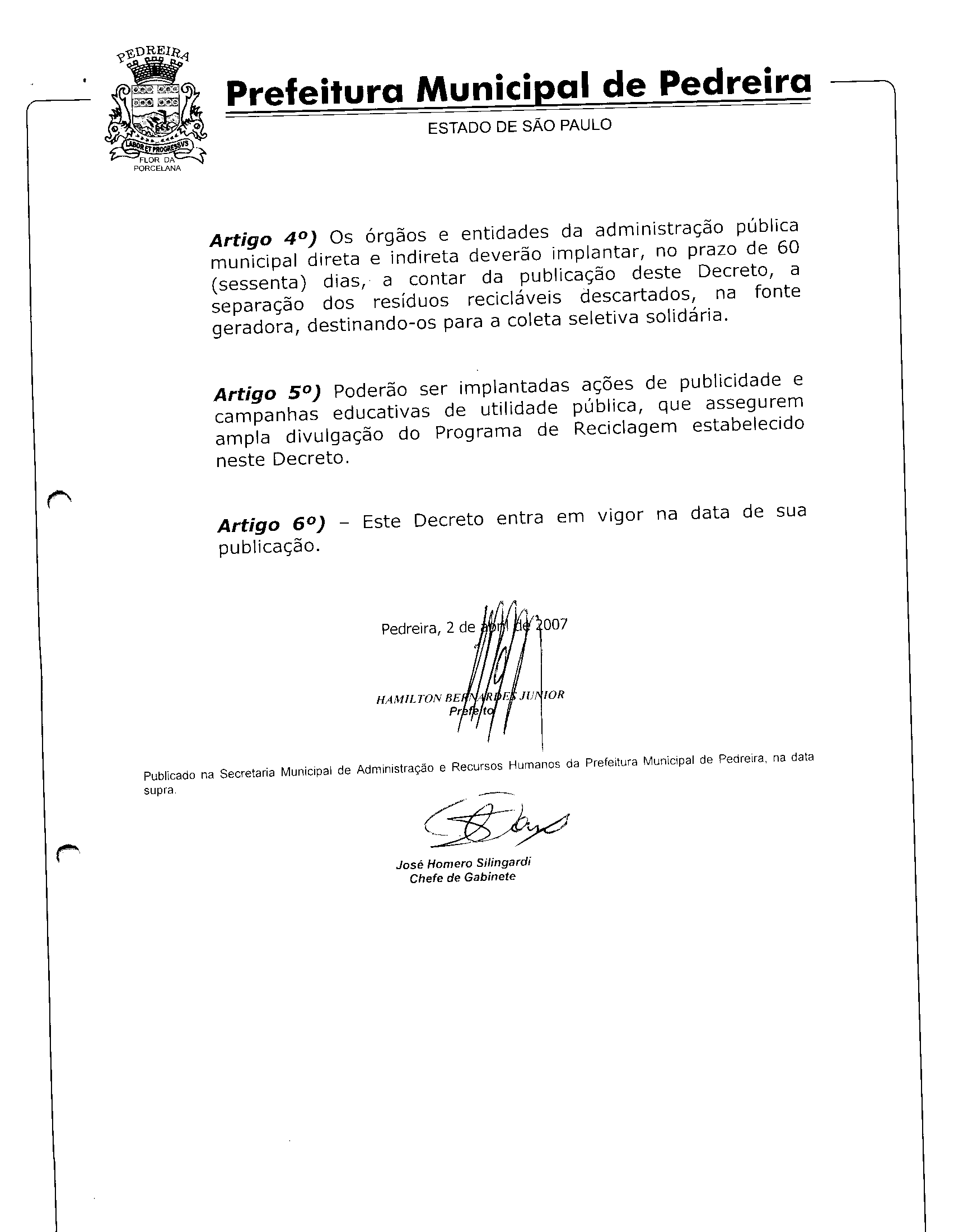 Ementa: Institui a separação dos resíduos recicláveis descartados pelos órgãos da administração pública municipal direta e indireta.