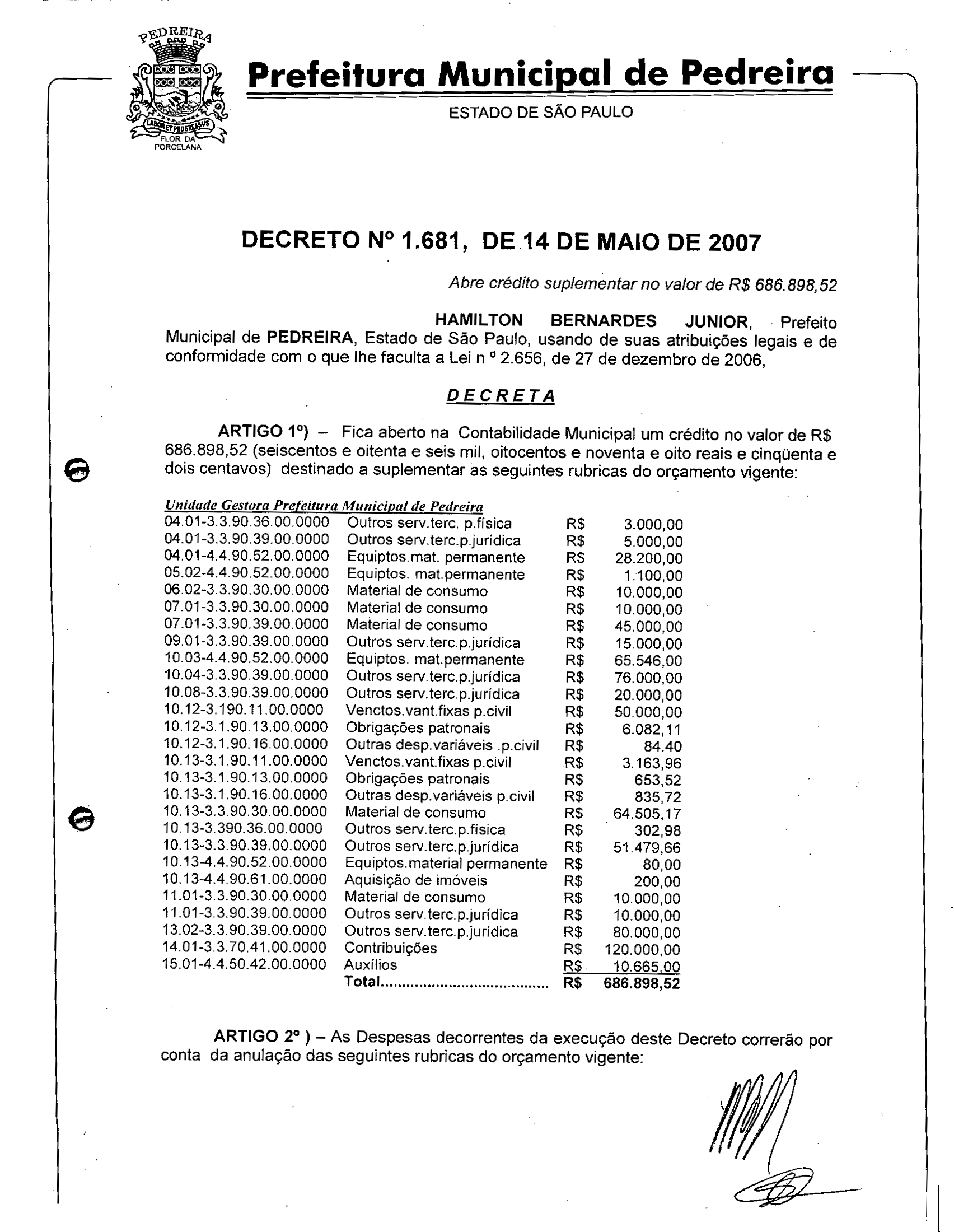 Decreto - N° 1681 de 14/05/2007