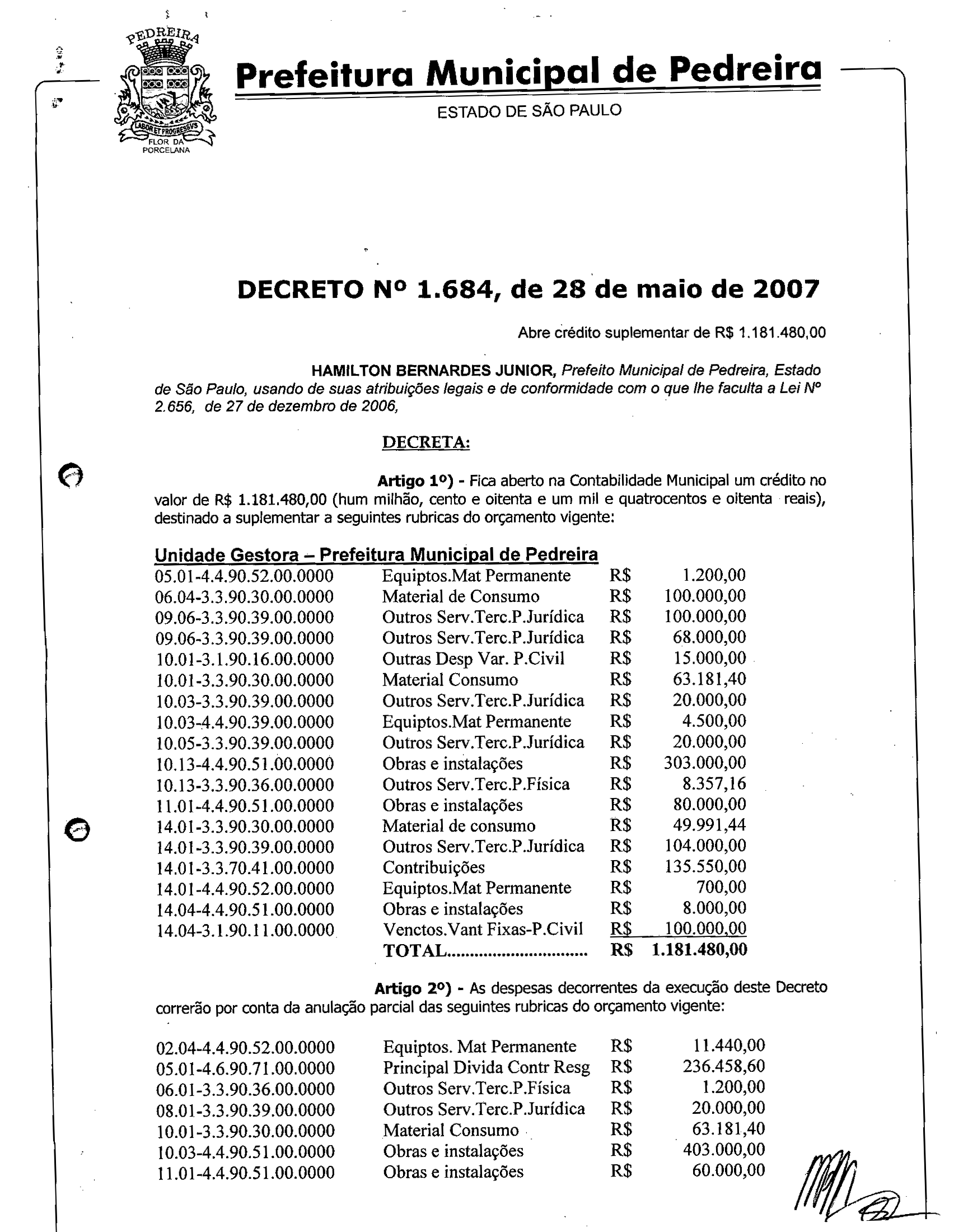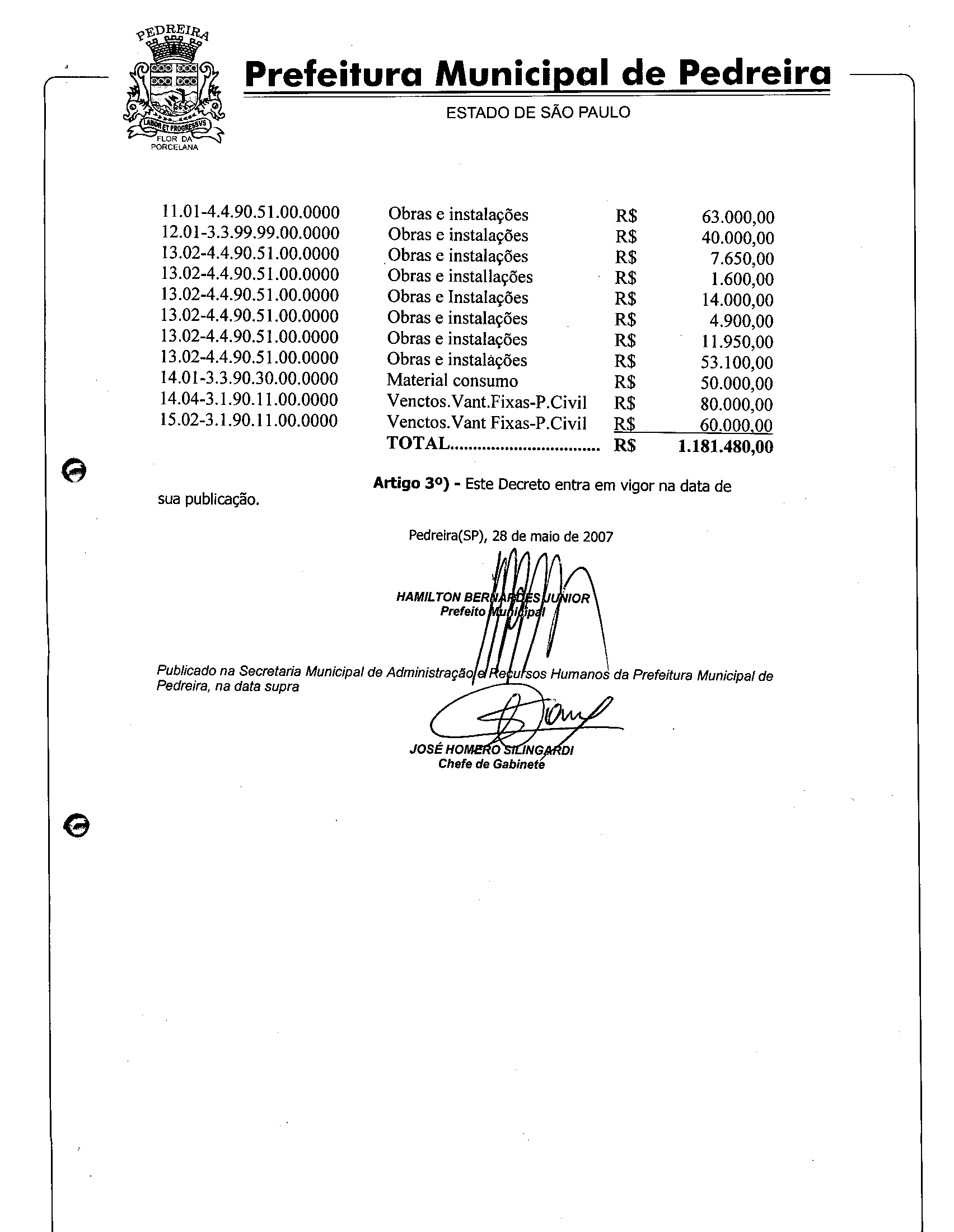 Ementa: Abre crédito suplementar de R$ 1.181.480,00.