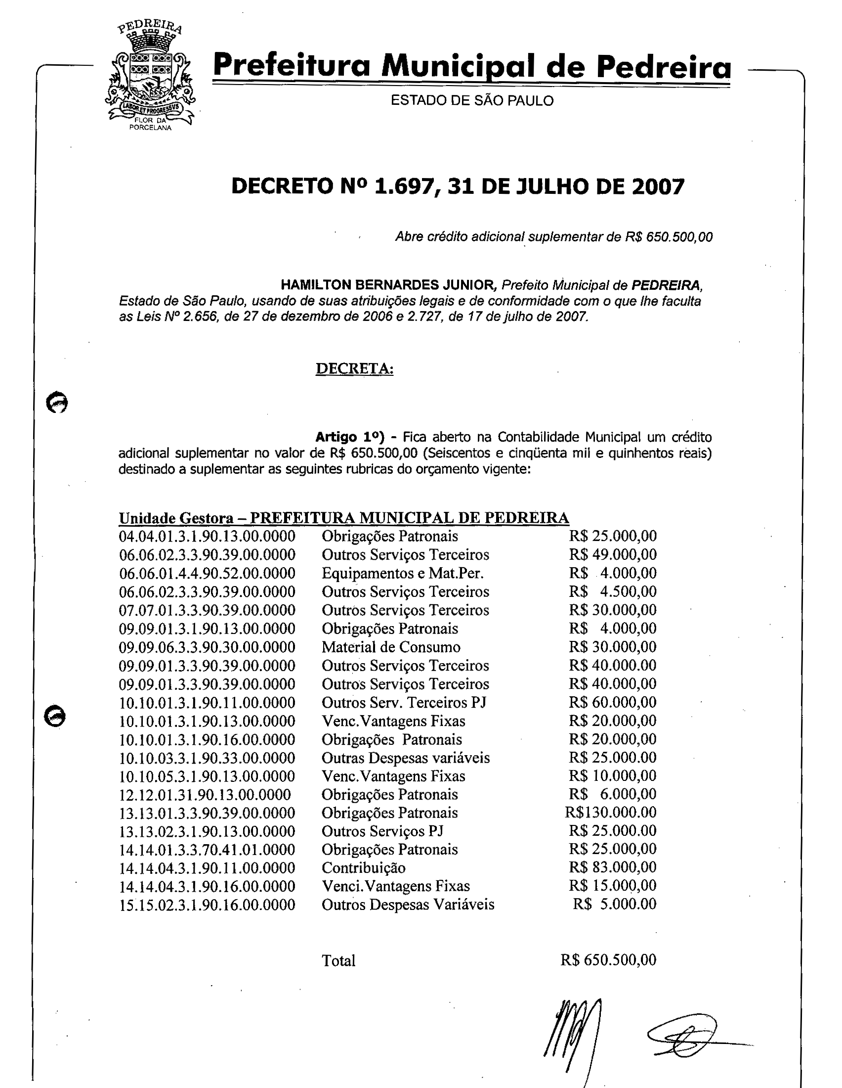 Decreto - N° 1697 de 31/07/2007