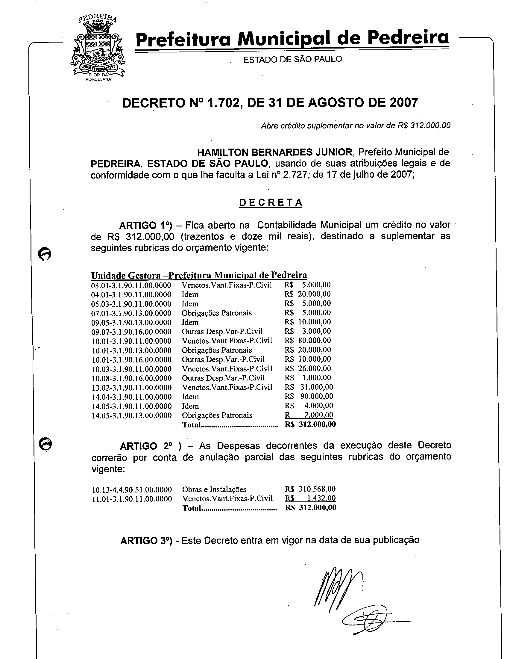 Decreto - N° 1702 de 31/08/2007