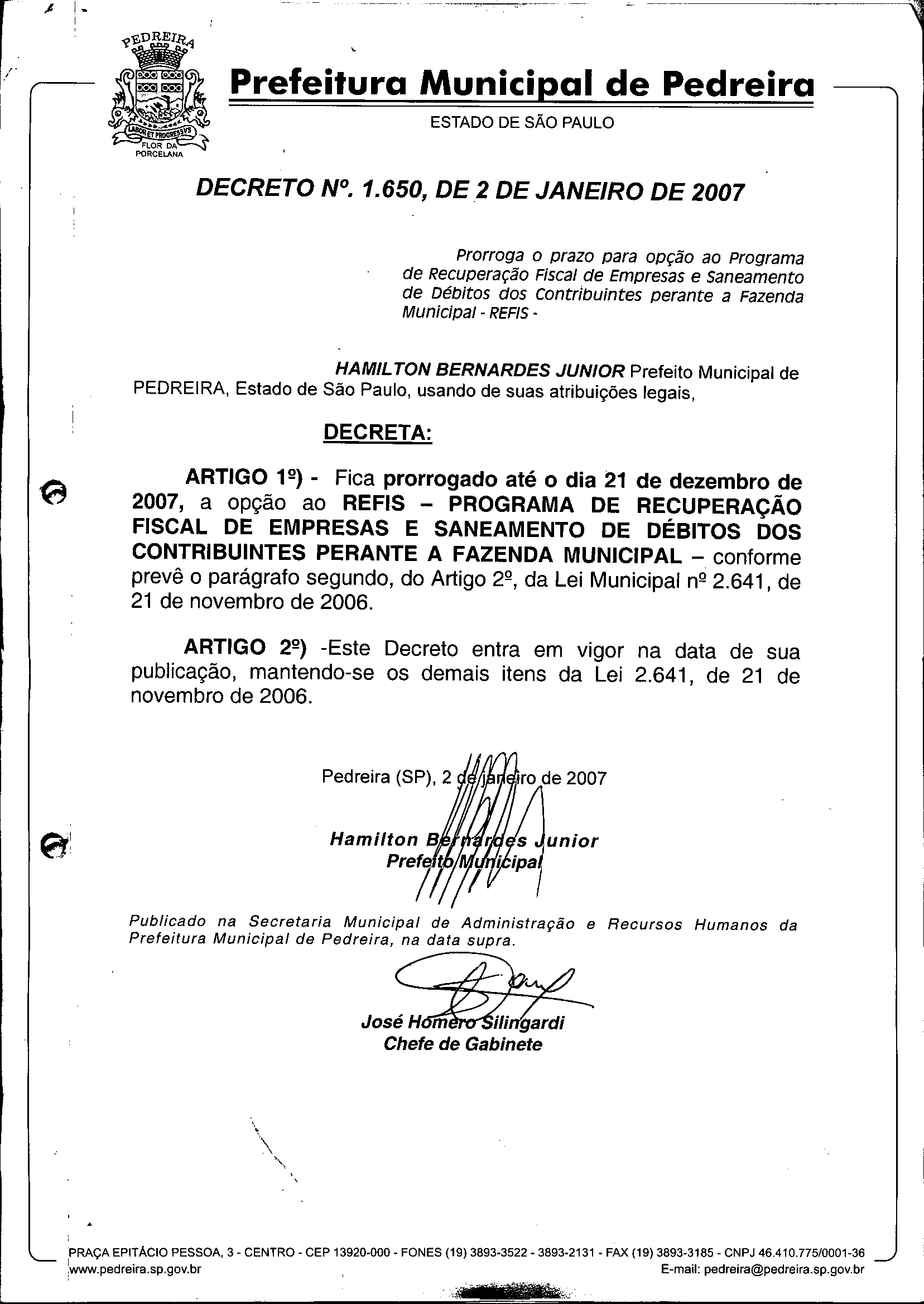 Decreto - N° 1650 de 02/01/2007