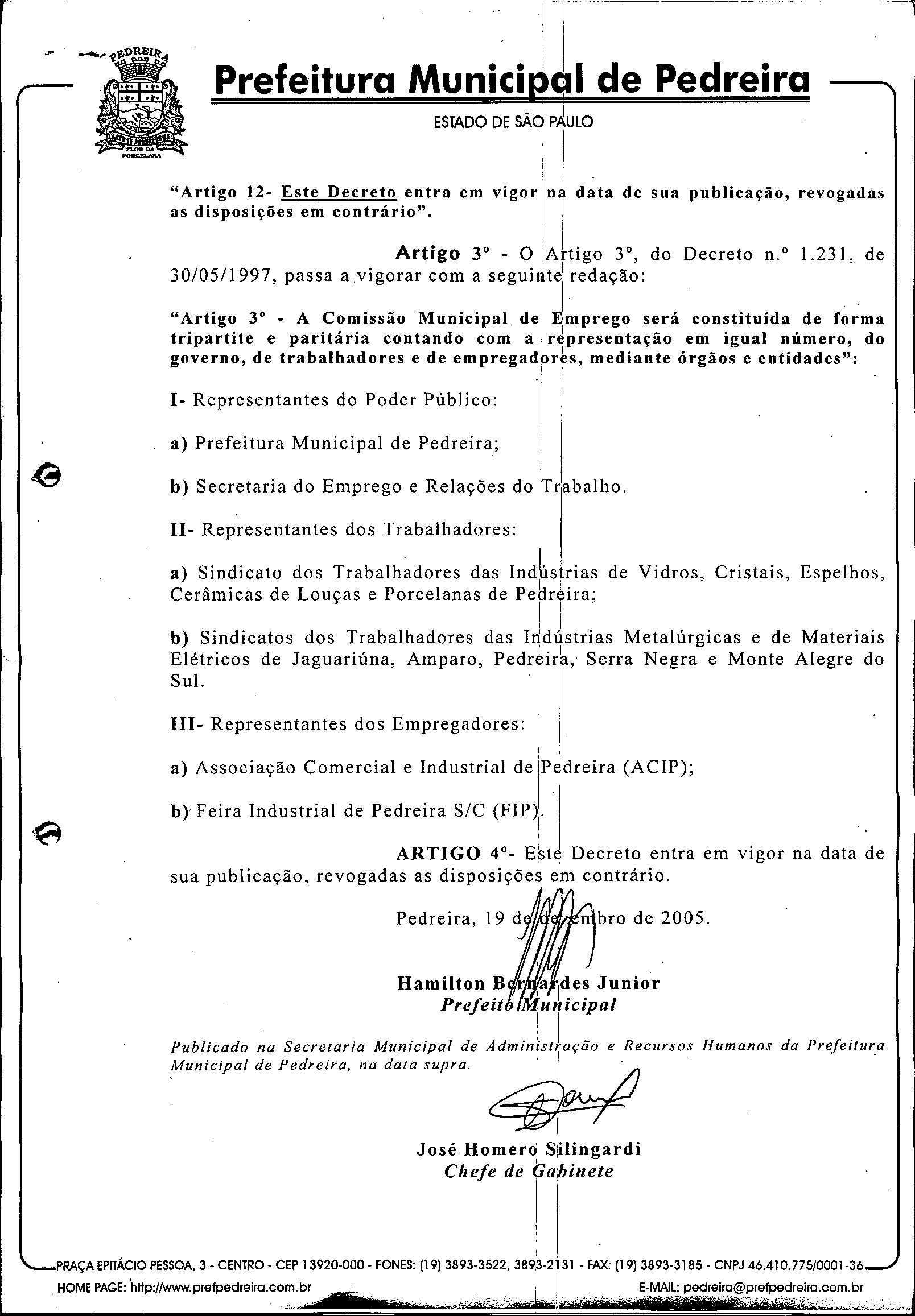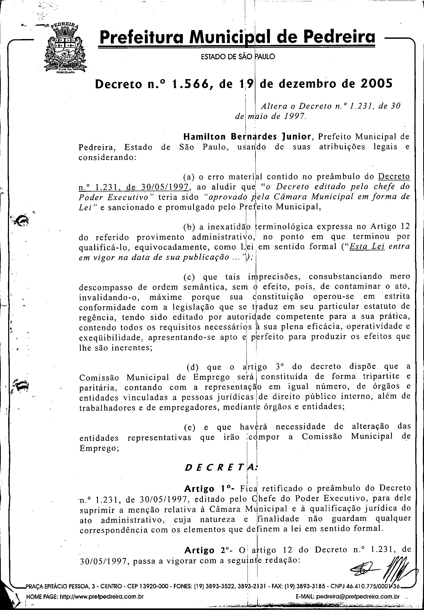 Ementa: Altera o Decreto n.° 1.231, de 30 de maio de 1997.