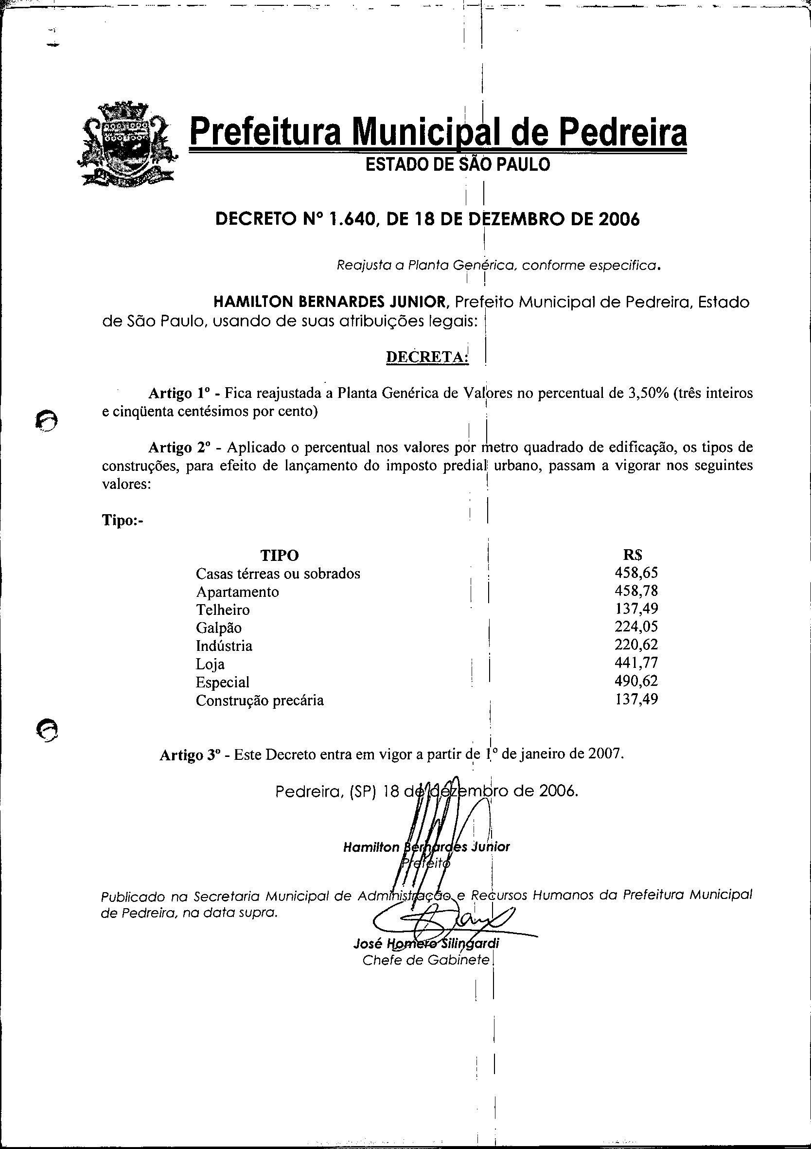 Ementa: Reajusta a Planta Genérica, conforme especifica.