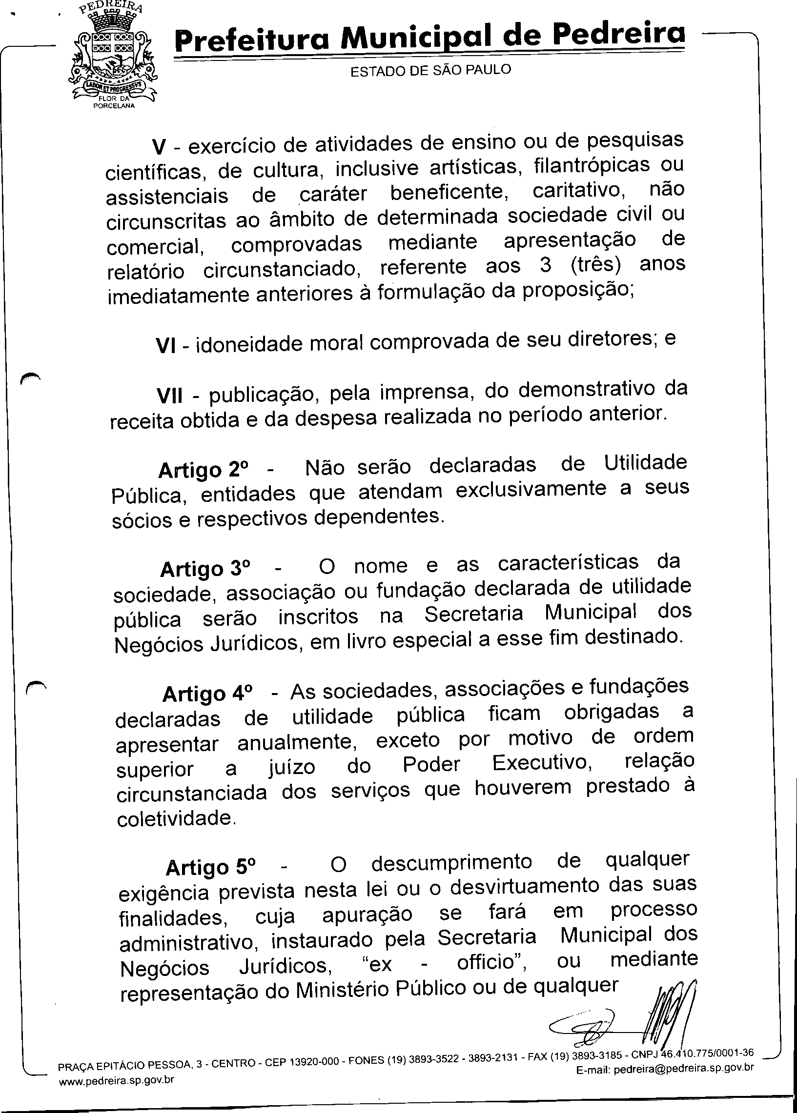 Ementa: Estabelece normas para Declaração de Utilidade Pública Municipal.