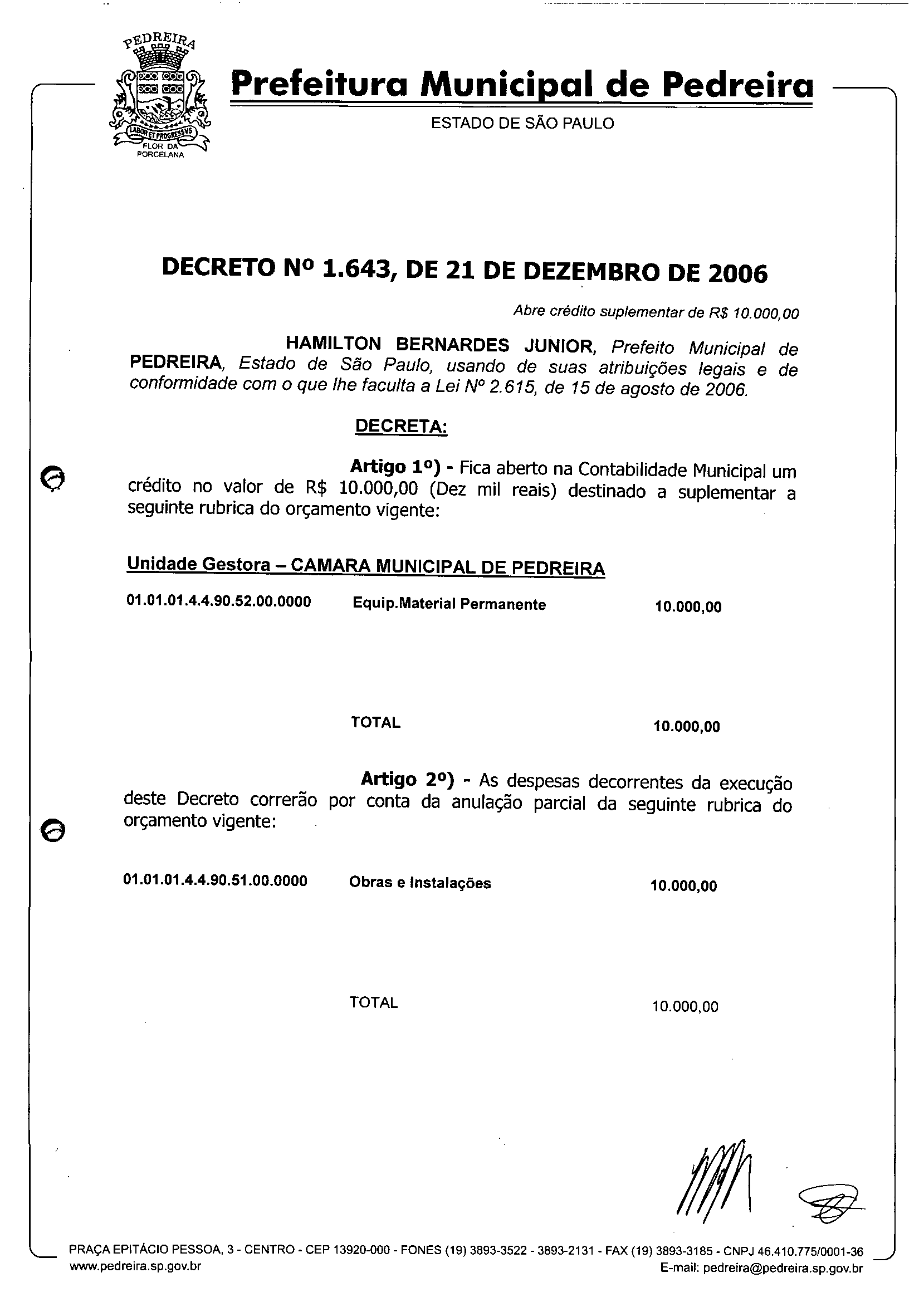 Ementa: Abre crédito suplementar de R$ 10.000,00.