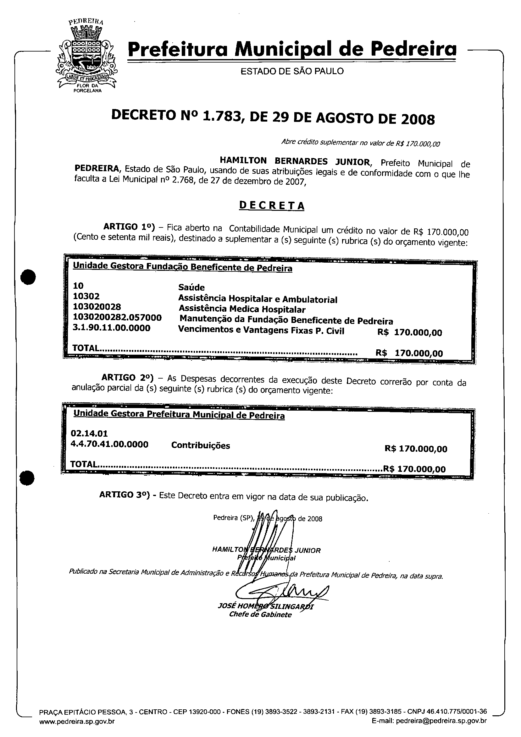 Ementa: Abre crédito suplementar no valor de R$ 170.000,.00