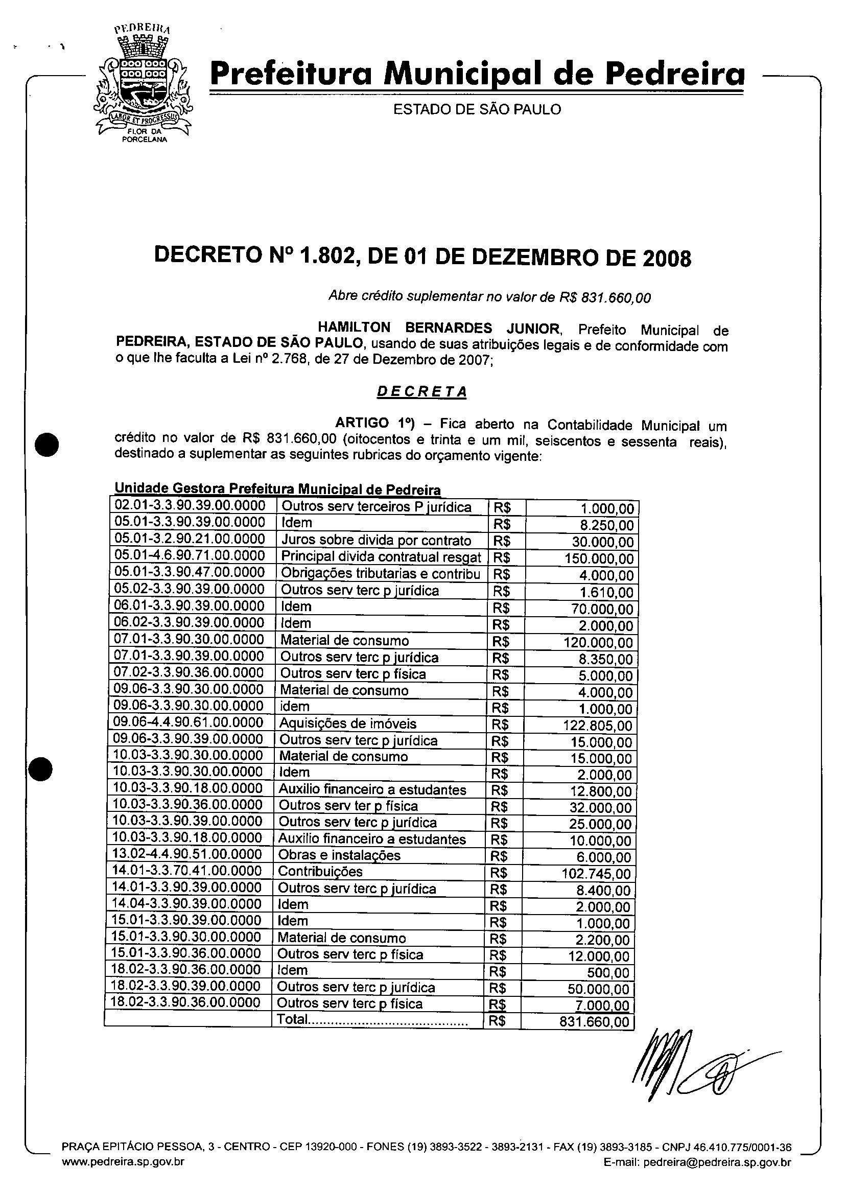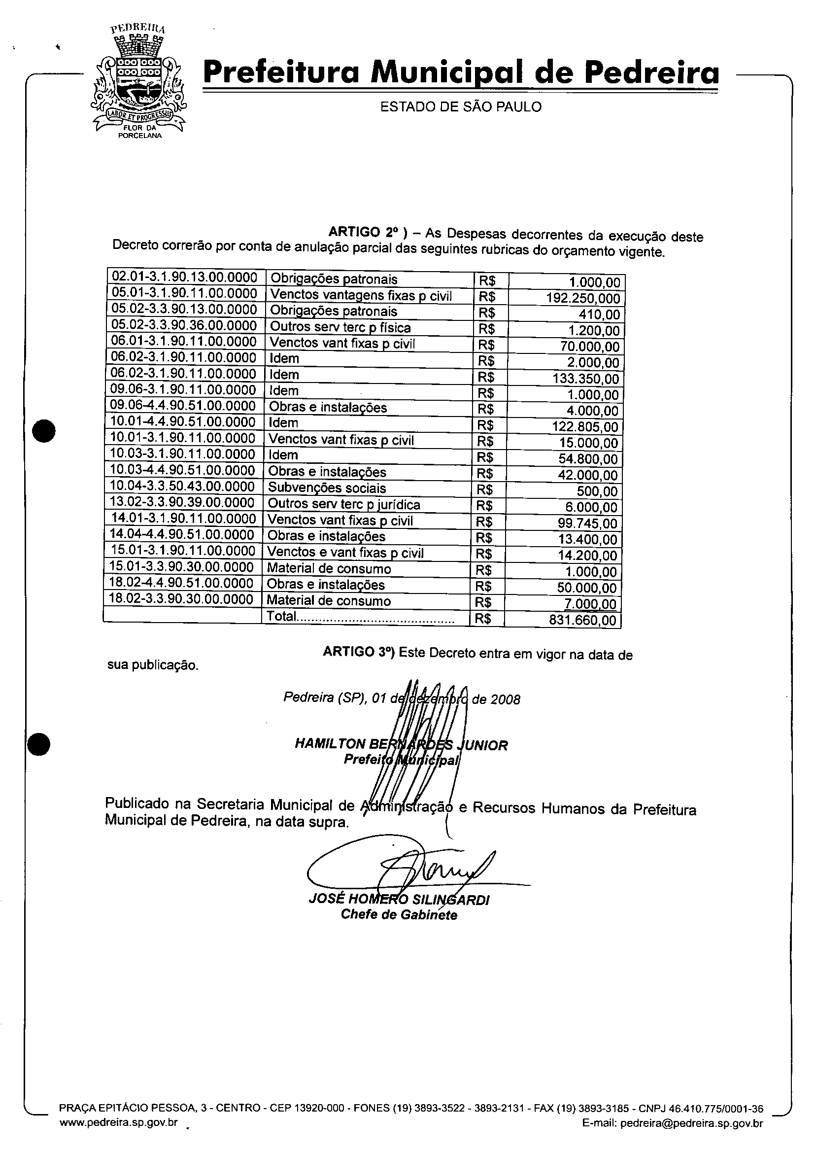 Ementa: Abre crédito suplementar no valor de R$ 831.660,00