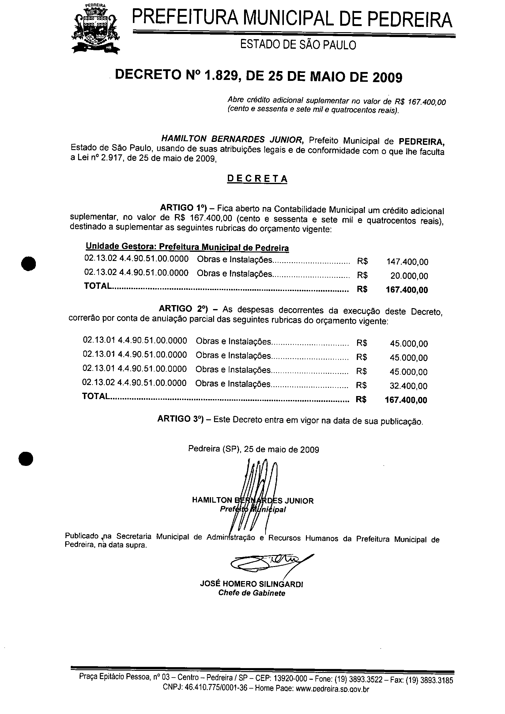 Decreto - N° 1829 de 25/05/2009