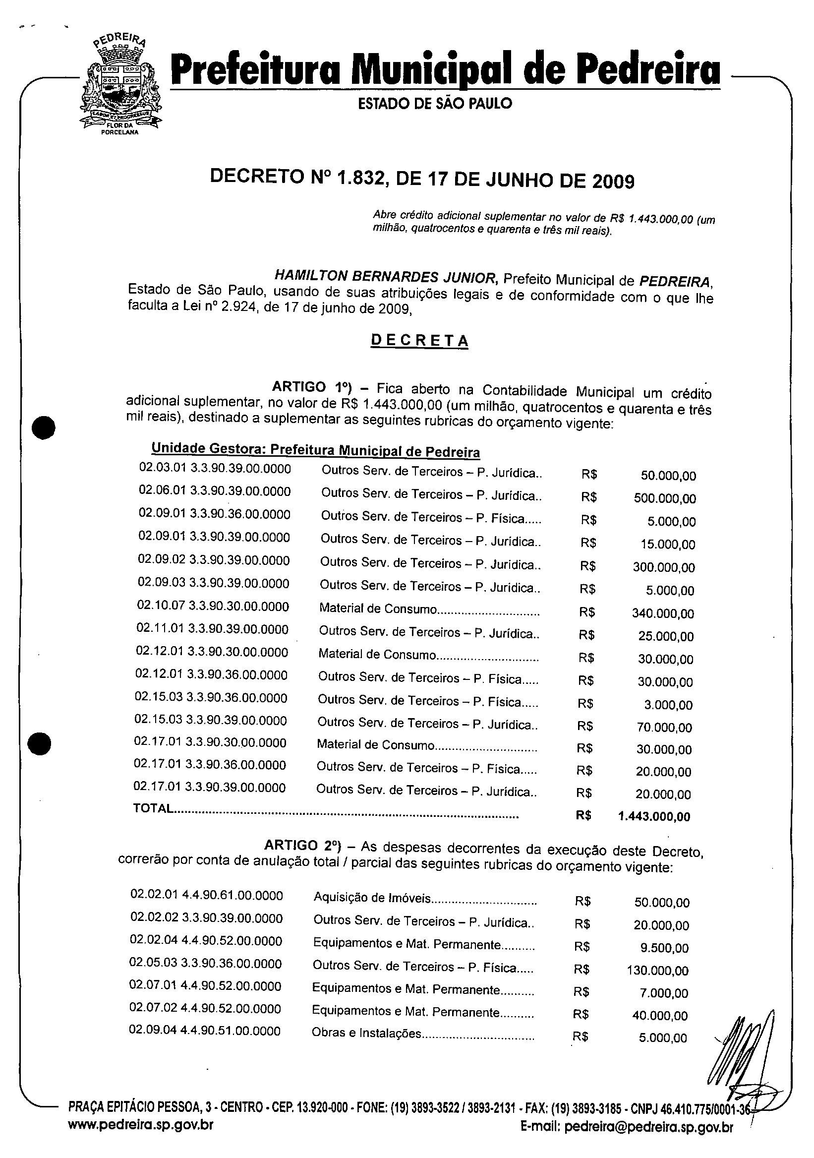 Decreto - N° 1832 de 17/06/2009