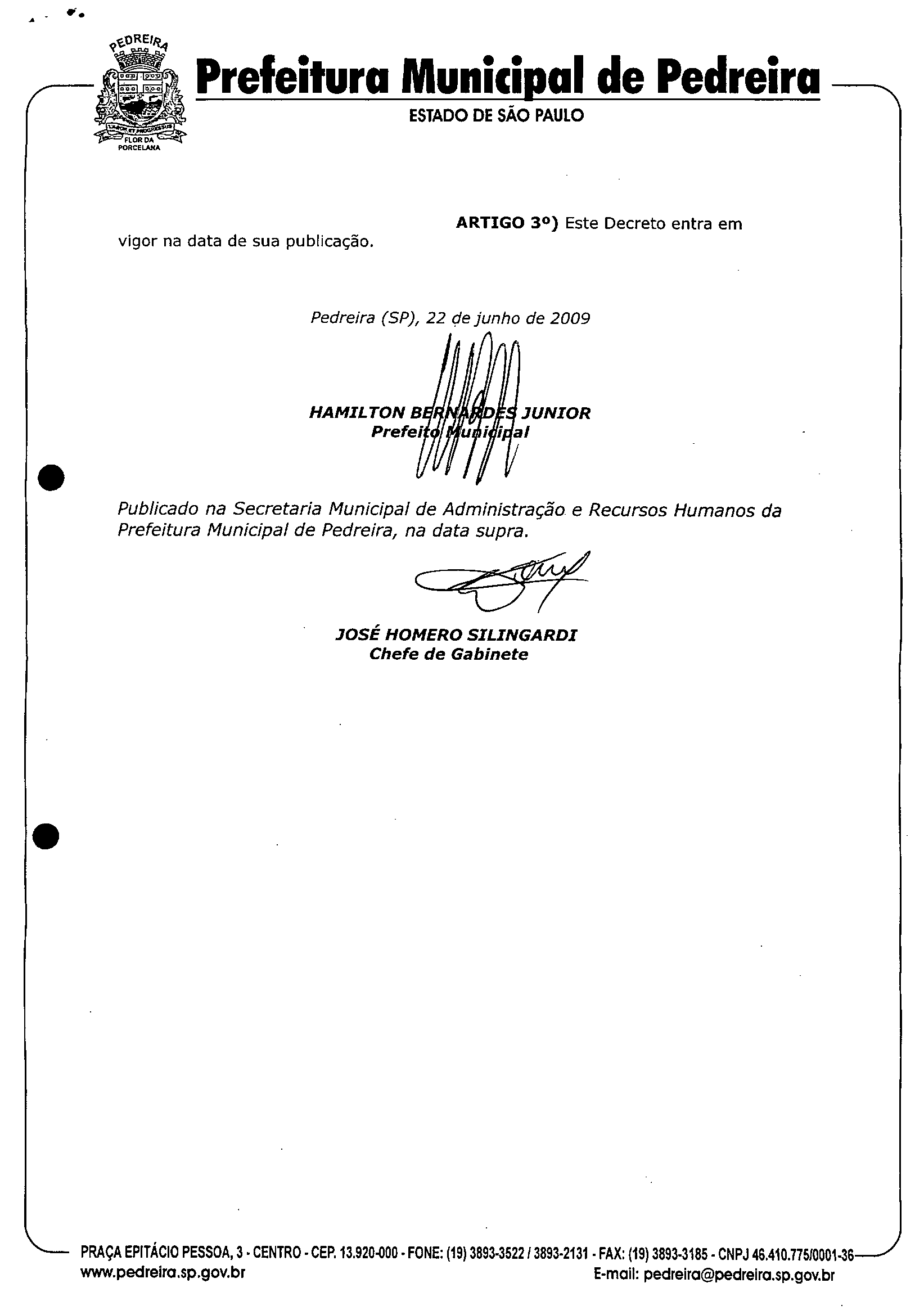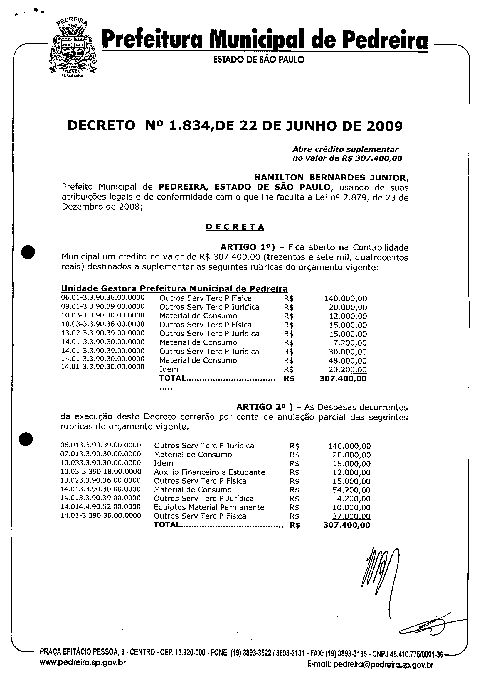 Decreto - N° 1834 de 22/06/2009