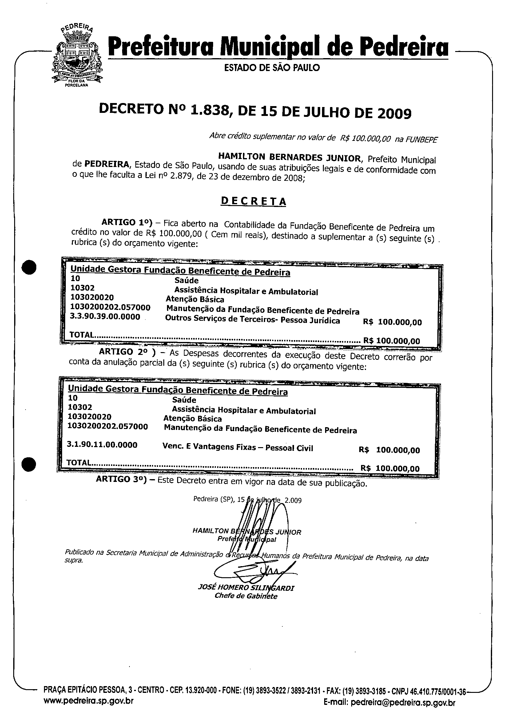 Decreto - N° 1838 de 15/07/2009