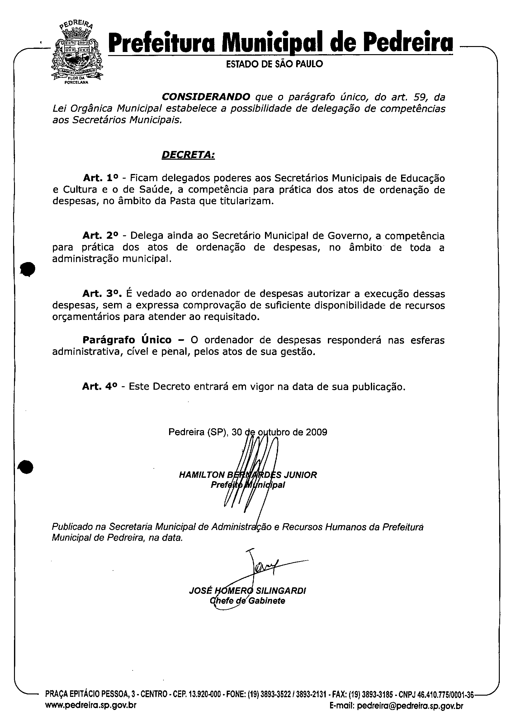 Ementa: DELEGA COMPETENCIA PARA ATOS DE ORDENAÇÃO DE DESPESAS QUE MENCIONA, E DÁ OUTRAS PROVIDÊNCIAS.