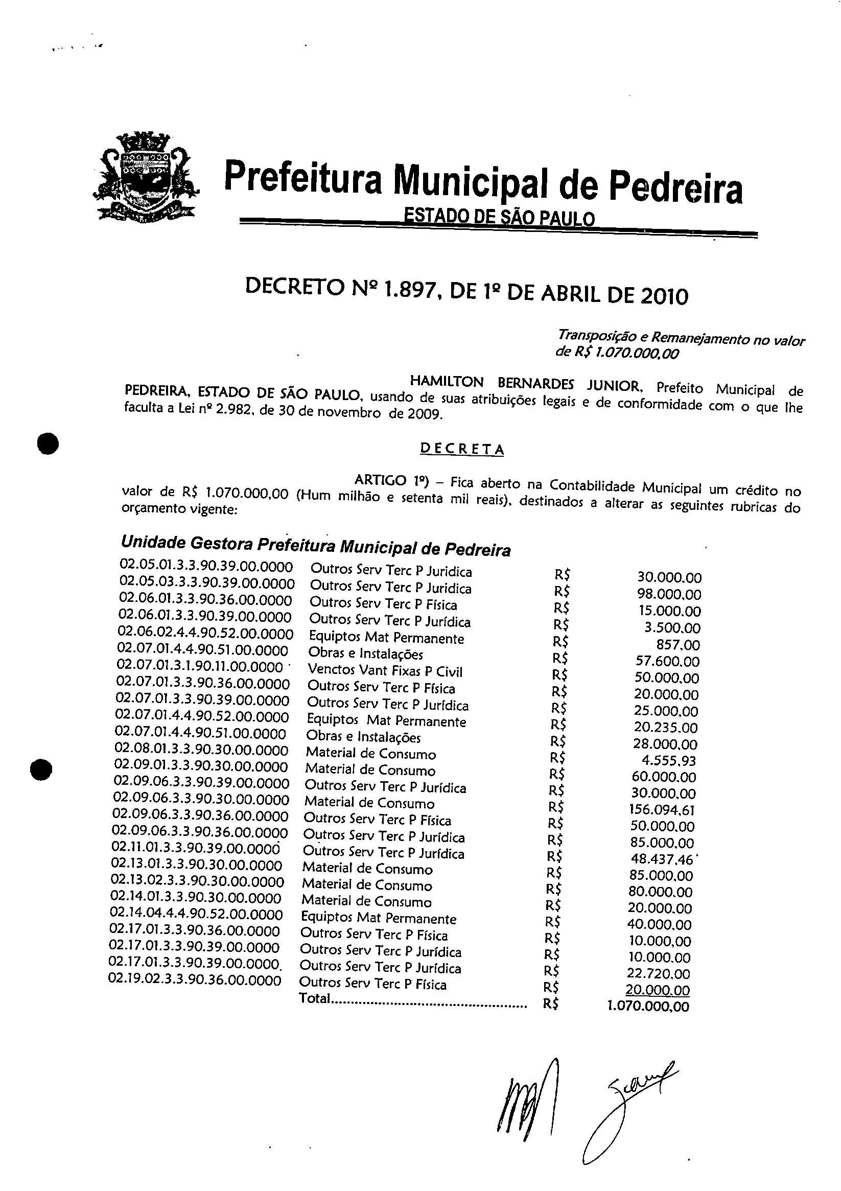 Ementa: Tran$po$ição e Remanejamento no valor de RI 1070.000.00