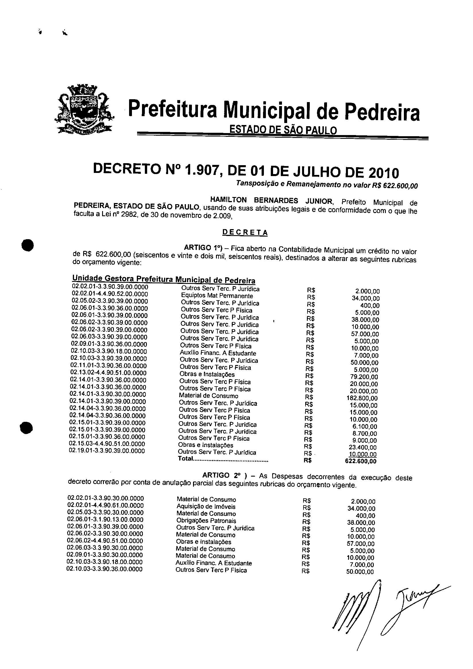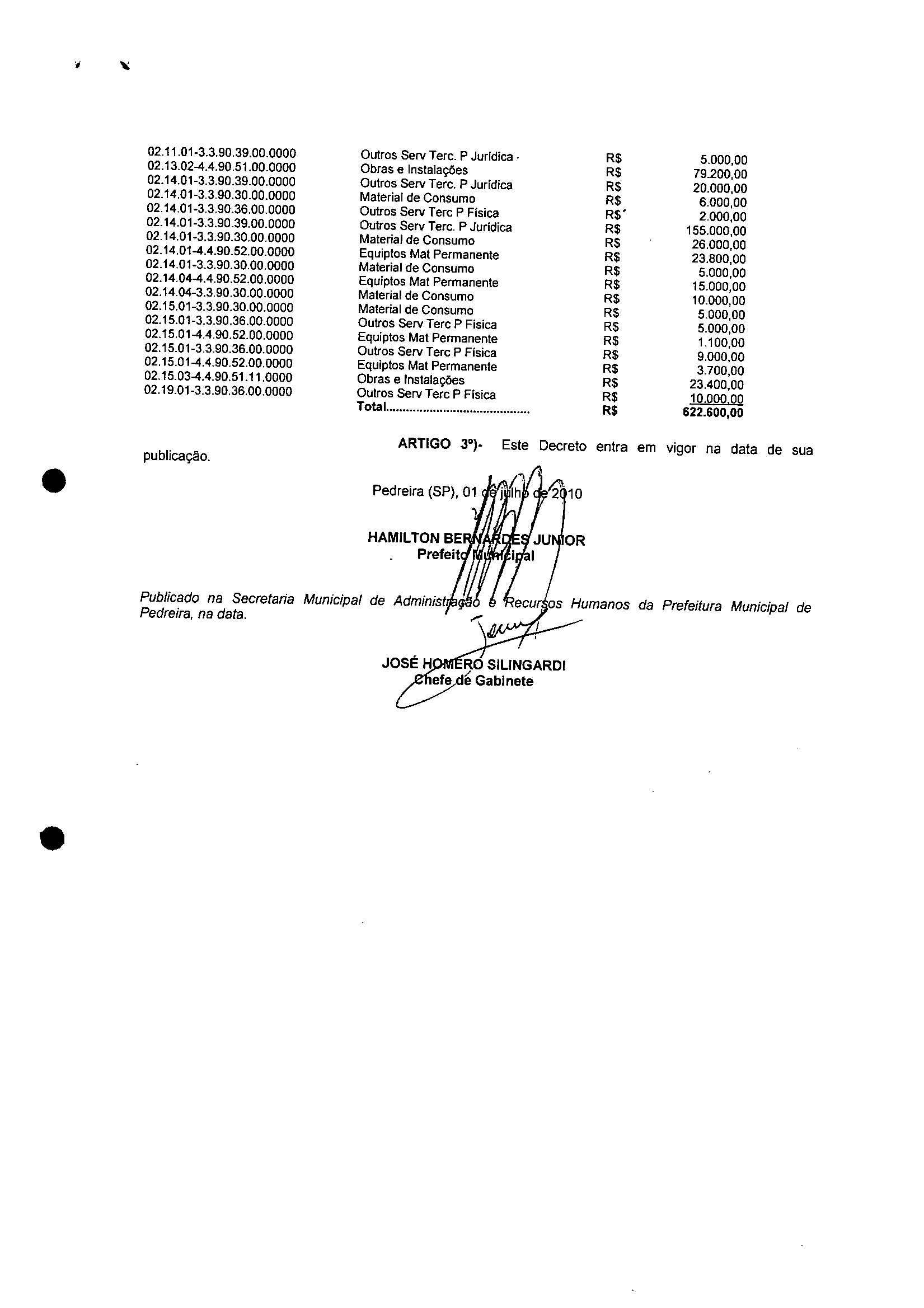 Ementa: Tansposição e Remanejamento no valor R$ 622.600,00