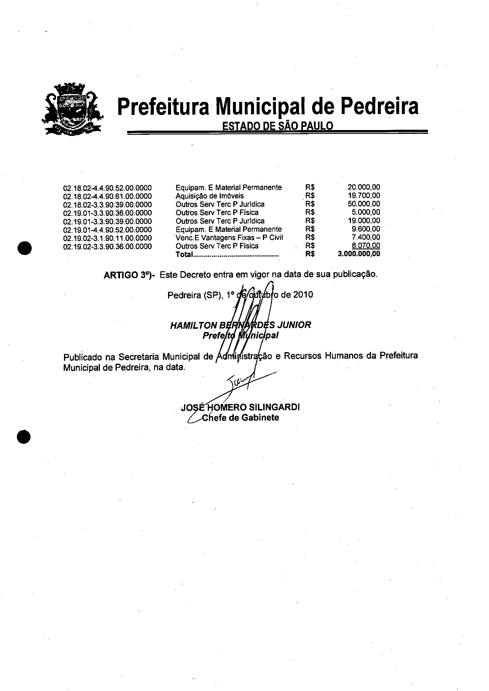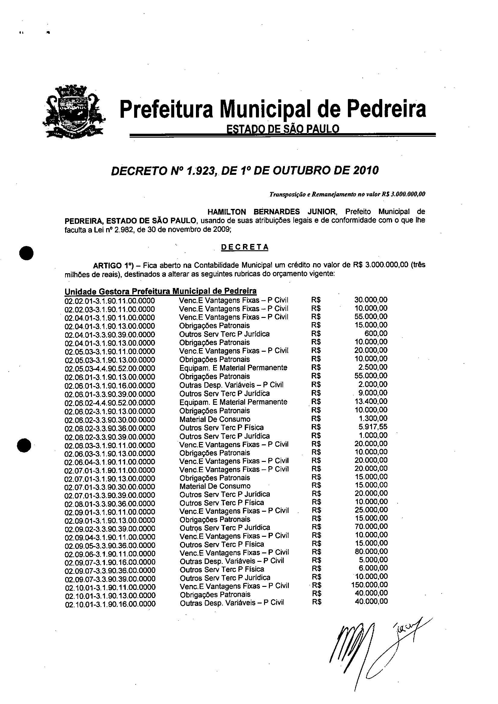 Ementa: Transposição e Remanejtunento no valor R$ 3.000.000,00