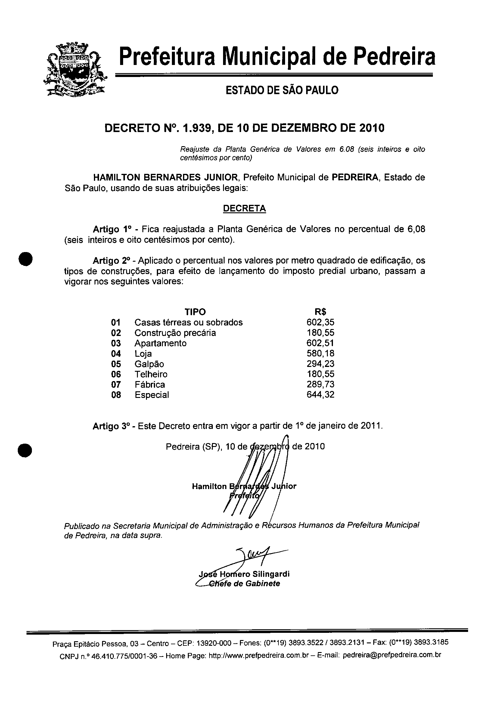 Ementa: Reajuste da Planta Genérica de Valores em 6.08 (seis inteiros e oito centésimos por cento)